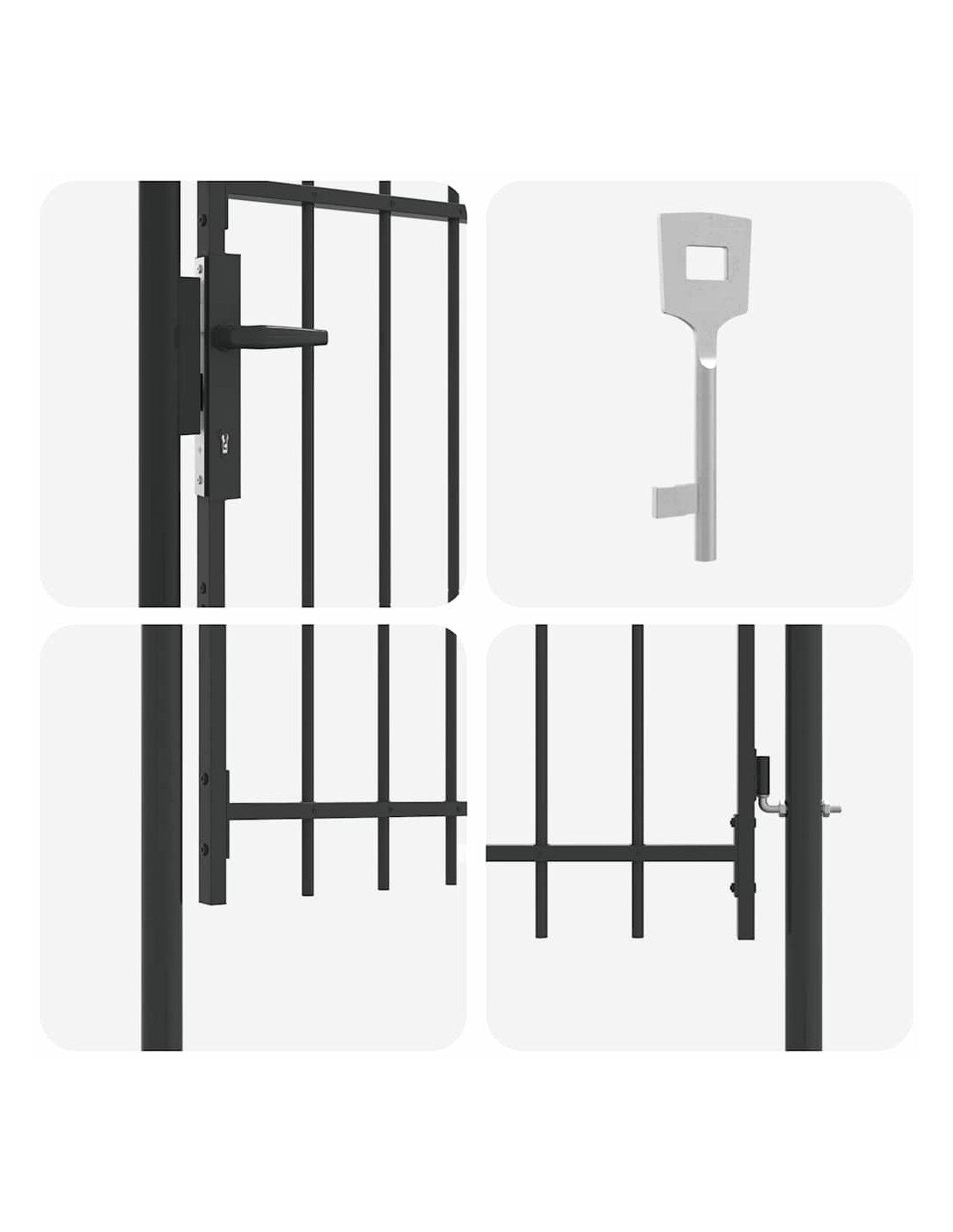 Questo cancello in metallo è pratico e resistente, perfetto per proteggere il tuo giardino o la tua terrazza con stile. È costruito in acciaio verniciato a polvere di alta qualità e unisce design moderno e funzionalità, per chi cerca praticità e bellezza all'esterno.