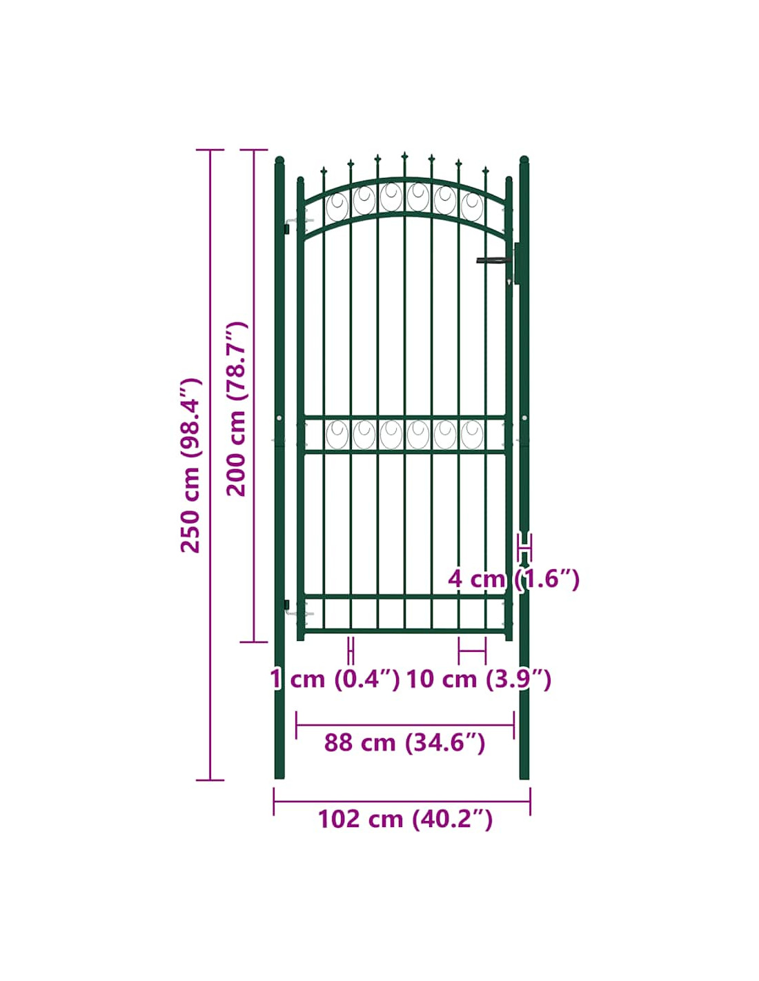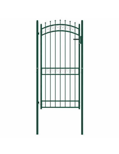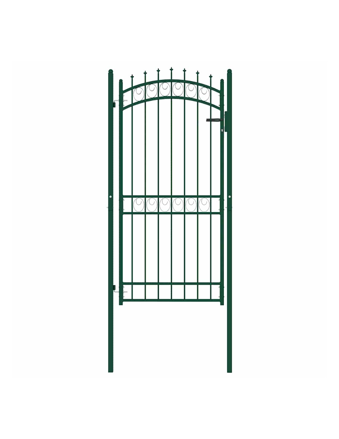 Fabbricato in acciaio robusto, il cancello d'ingresso è verniciato a polvere per resistere a ruggine e corrosione. Grazie alle barre verticali con punte e ai robusti sostegni orizzontali di rinforzo per il telaio, il nostro cancello da giardino offre la massima sicurezza. In aggiunta, il design ad arco conferisce un tono elegante all'ingresso. È inoltre dotato di una serratura con tre chiavi e viene fornito con due pali robusti, dotati di resistenti cerniere, per una facile installazione.