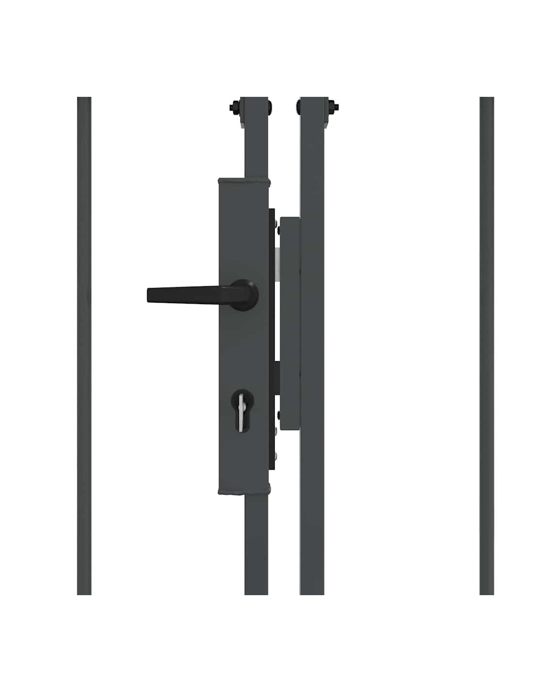 Questo cancello da giardino è resistente e ha una parte superiore arcuata che lo rende moderno, unendo semplicità e praticità. È perfetto per giardini e terrazze. Fatto di acciaio, è resistente all'acqua e smplifica la sicurezza nel tuo giardino. Il suo design elegante si adatta a vari stili e porta sia un aspetto bello sia funzionalità.