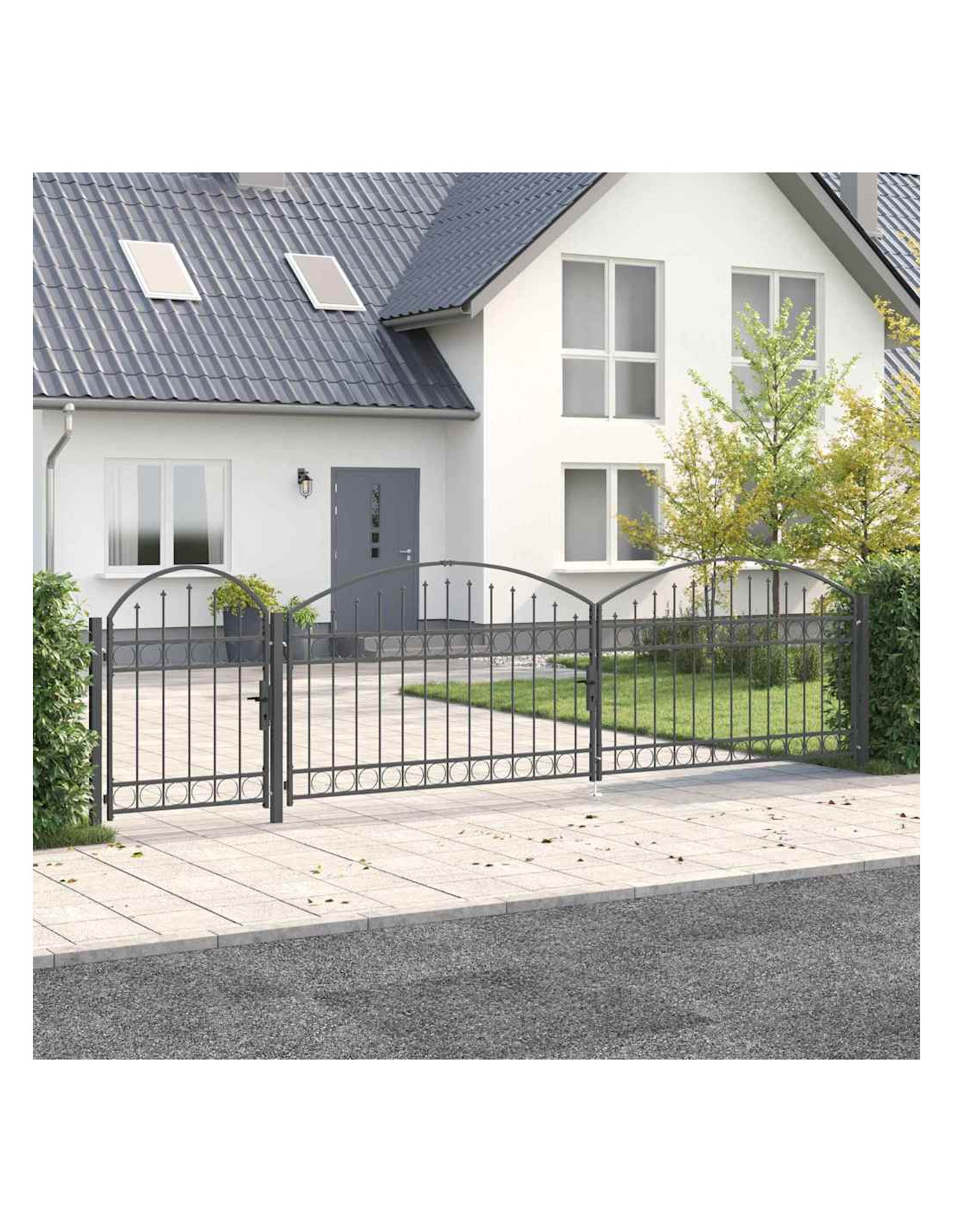 Questo cancello da giardino è resistente e ha una parte superiore arcuata che lo rende moderno, unendo semplicità e praticità. È perfetto per giardini e terrazze. Fatto di acciaio, è resistente all'acqua e smplifica la sicurezza nel tuo giardino. Il suo design elegante si adatta a vari stili e porta sia un aspetto bello sia funzionalità.