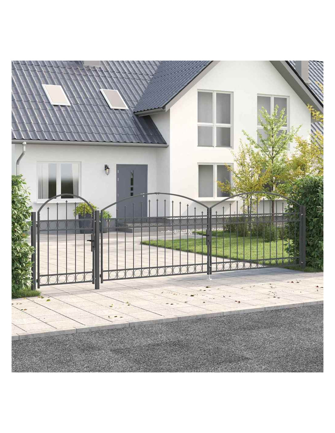 Questo cancello da giardino è resistente e ha una parte superiore arcuata che lo rende moderno, unendo semplicità e praticità. È perfetto per giardini e terrazze. Fatto di acciaio, è resistente all'acqua e smplifica la sicurezza nel tuo giardino. Il suo design elegante si adatta a vari stili e porta sia un aspetto bello sia funzionalità.