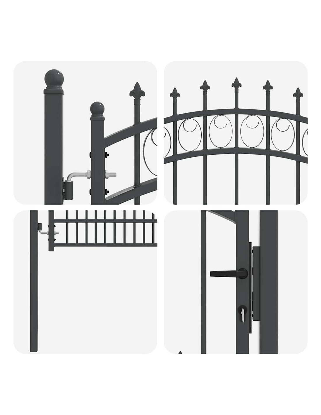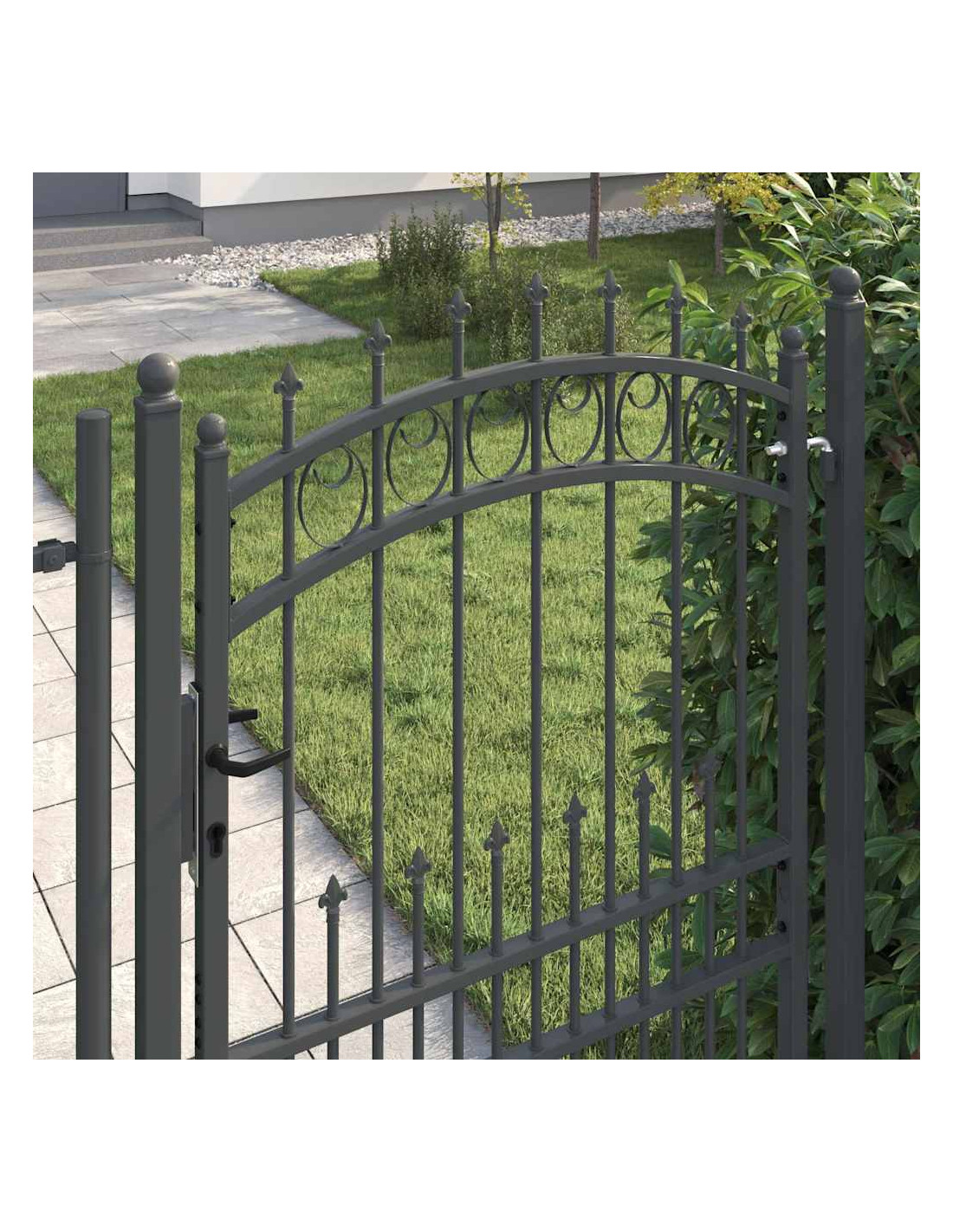 Questo cancello con spuntoni rappresenta la semplicità moderna, con una struttura in acciaio verniciato a polvere dalle linee pulite e pochi fronzoli. È pensato per ambienti esterni come giardini e terrazze, combinando perfettamente stile e praticità. Il design ad arco lo rende non solo funzionale, ma anche un elemento bello per qualsiasi spazio esterno. La costruzione robusta assicura prestazioni affidabili in diverse condizioni atmosferiche.