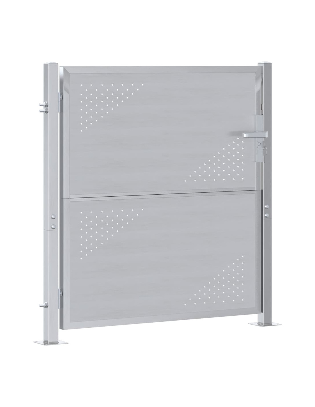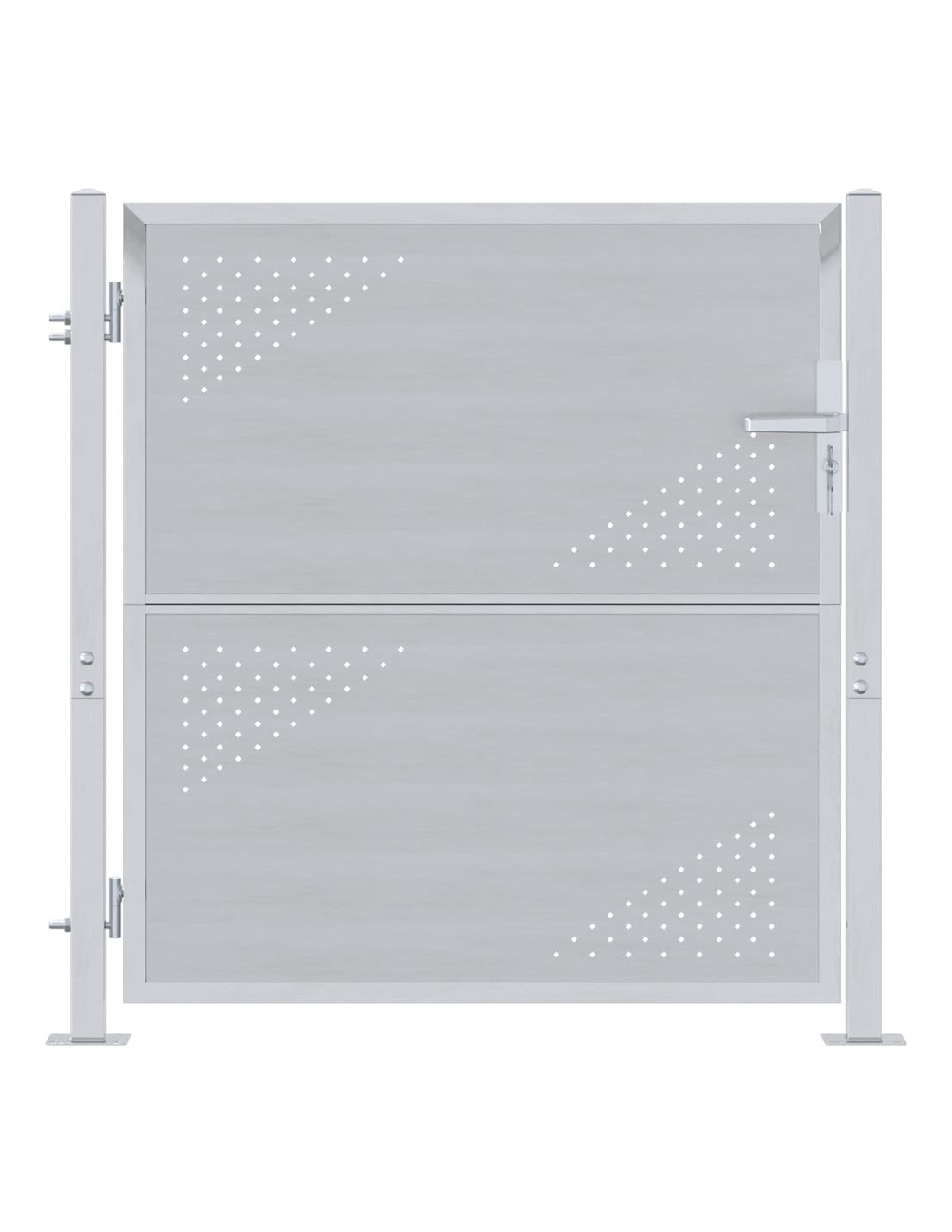 Questo cancello da giardino è un’aggiunta bella e pratica a qualsiasi spazio all'aperto, pensato per regalare sicurezza e stile al tuo giardino o terrazza. Con una finitura argentea elegante, questo cancello rettangolare ha un aspetto moderno che si integra bene in tanti ambienti esterni. Progettato per l'esterno, questo cancello unisce estetica e funzionalità, assicurando sia sicurezza che un bel colpo d'occhio.