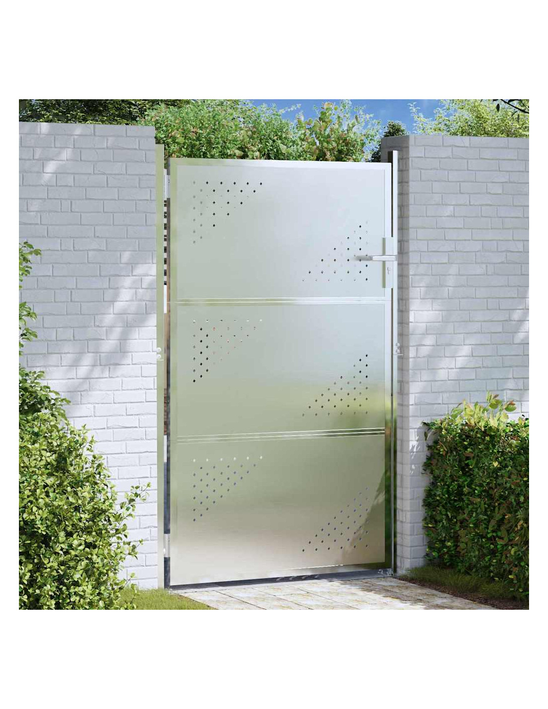 - Costruzione in acciaio inossidabile Retta alla ruggine, questo cancello resiste a tutte le condizioni climatiche, rendendolo perfetto per l'uso esterno tutto l'anno. L'acciaio inox garantisce durata e mantiene il suo aspetto nel tempo con poca manutenzione.