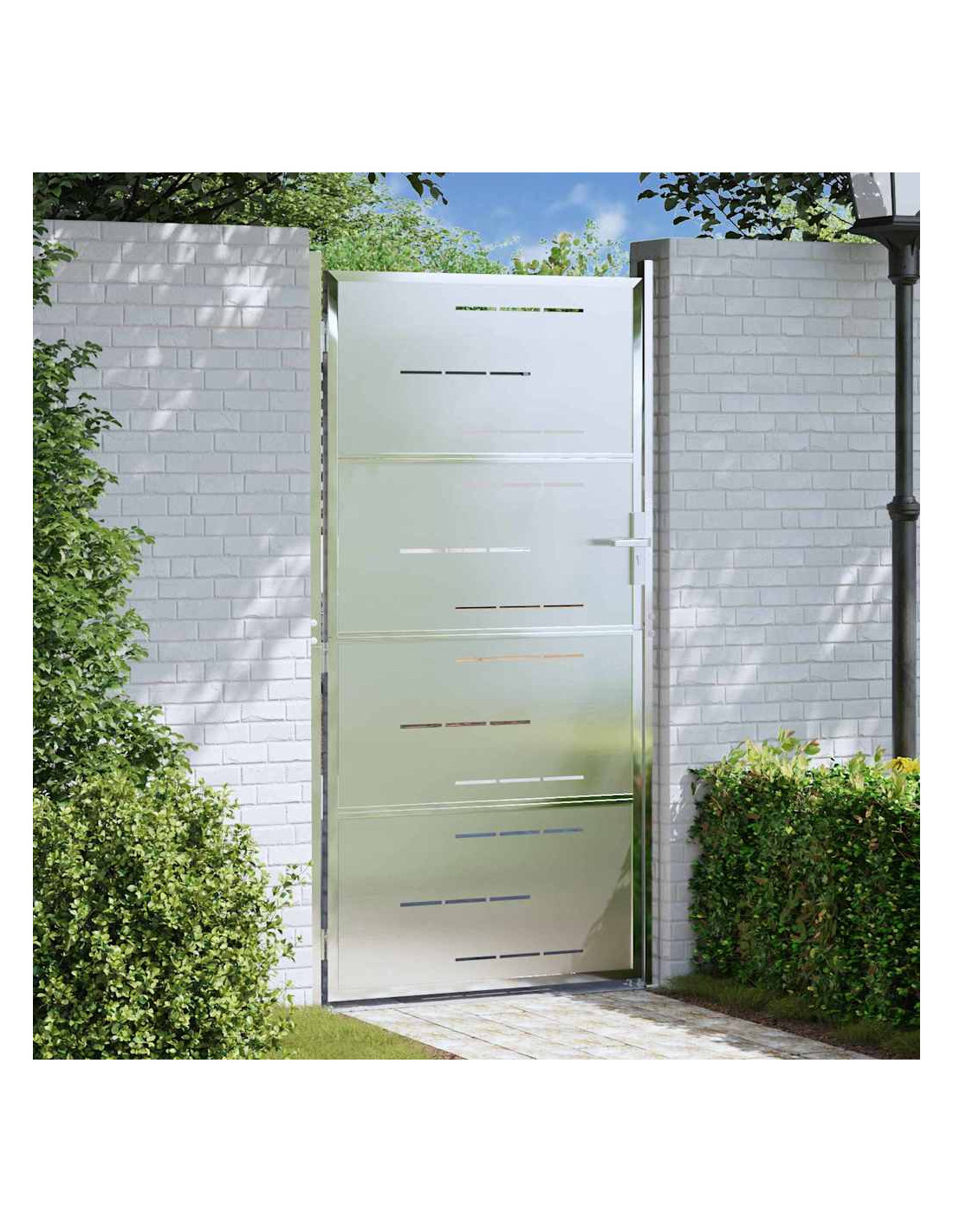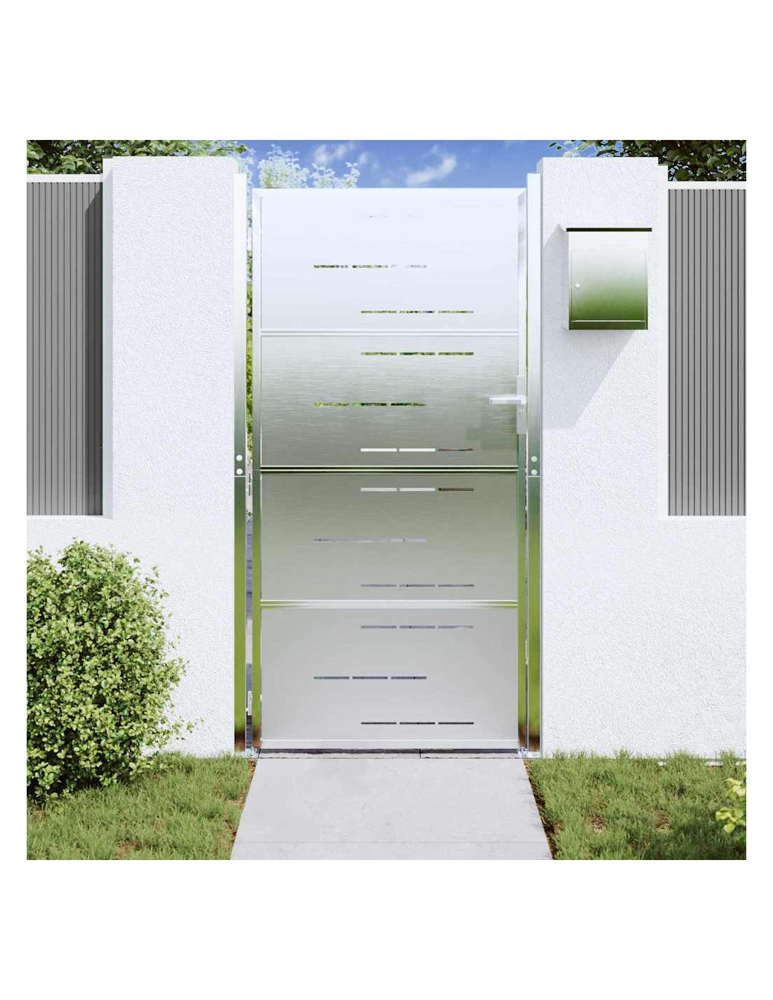Questo Cancello da Giardino Rettangolare, fatto in acciaio inossidabile, combina eleganza e funzionalità per gli spazi esterni. Ideale per giardini e terrazze, il suo stile moderno mescola linee pulite con un design semplice, aggiungendo un tocco contemporaneo e delimitando in sicurezza la tua area esterna. Il suo colore silver è davvero accattivante e si integra senza problemi con qualsiasi stile di giardino. Pensato per l'uso all'aperto, resiste a qualsiasi condizione atmosferica, offrendo un ingresso sicuro per la tua zona verde.
