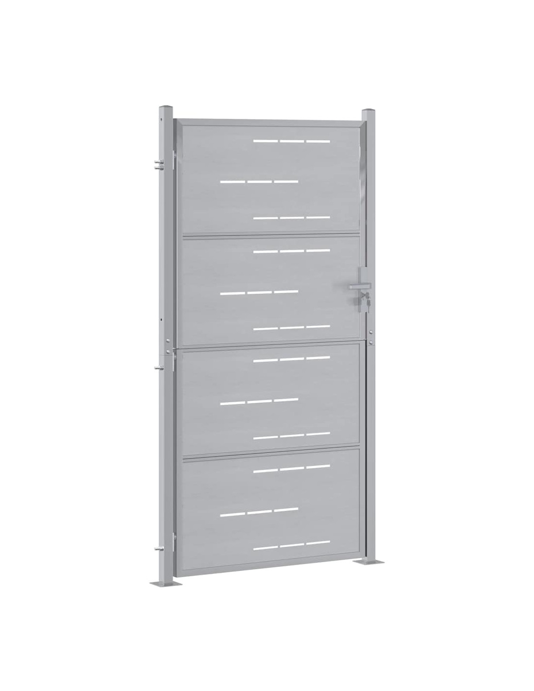 - Apporto Estetico Moderno: Con una finitura silver chic, questo cancello si adatta perfettamente a contesti moderni. Design minimale e linee pulite non solo segnano un confine, ma arricchiscono il tuo giardino, aggiungendo un tocco di eleganza.