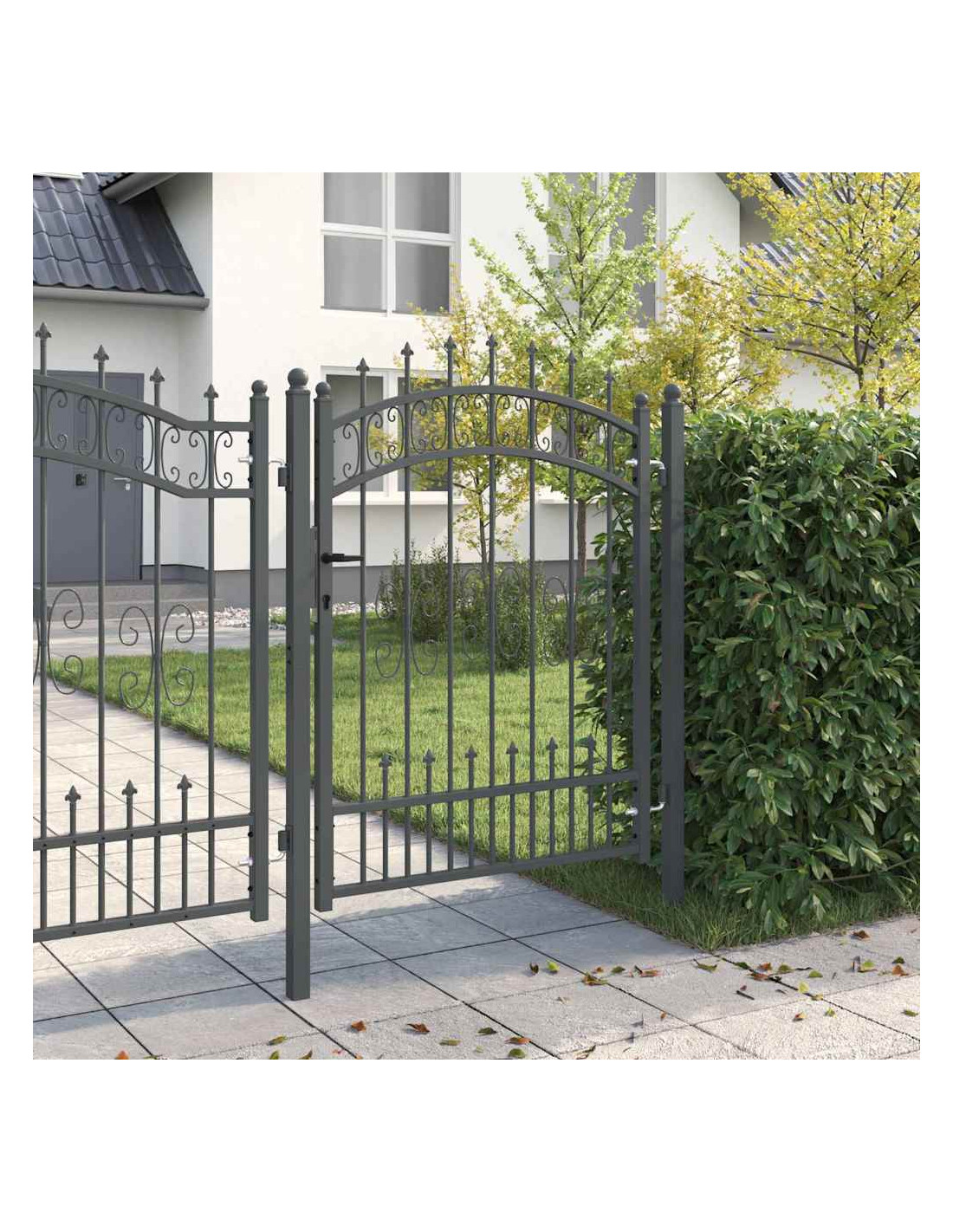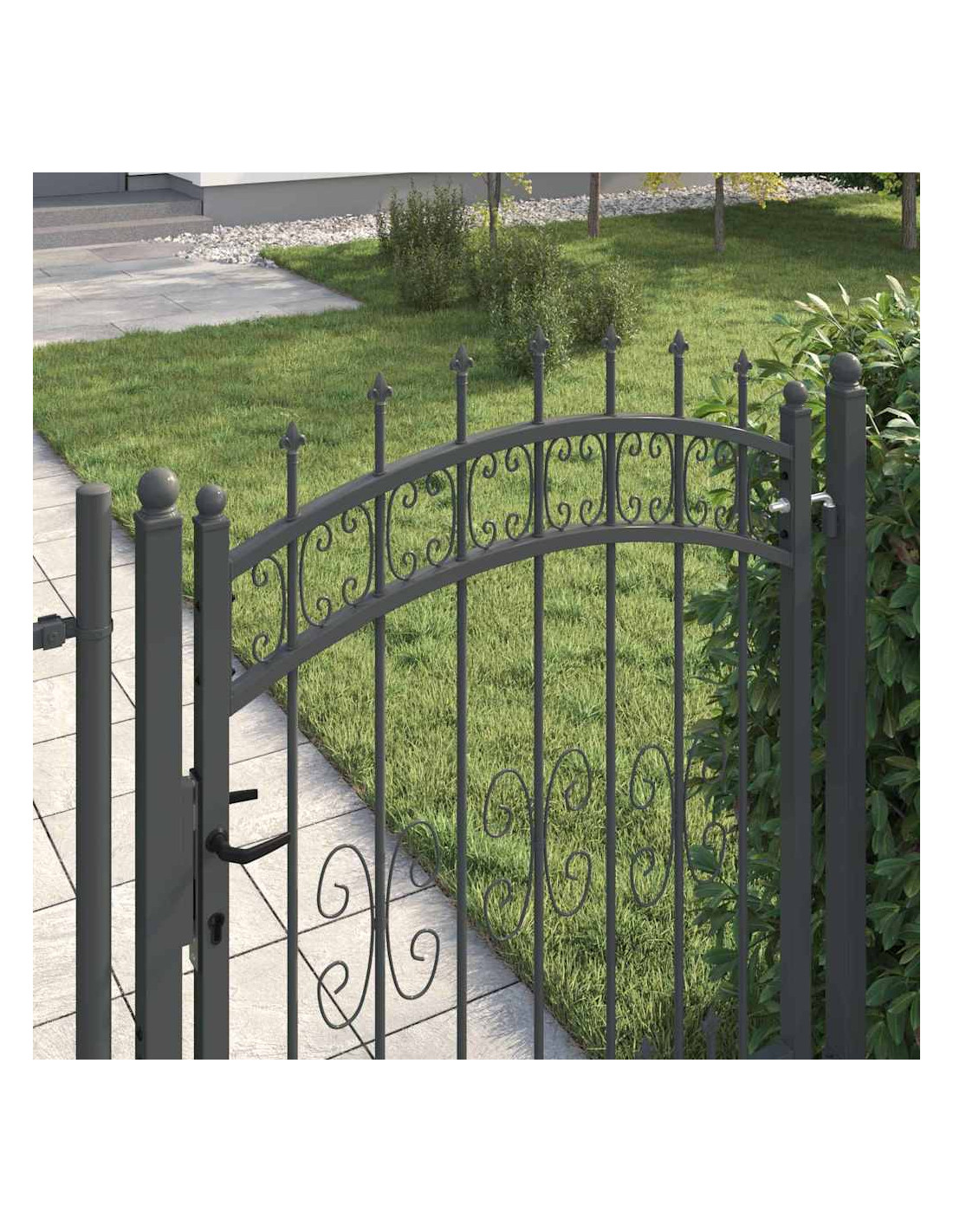 - Acciaio di qualità Questo cancello è realizzato in acciaio resistente, perfetto per affrontare il maltempo. La sua resistenza si combina con un bel design tradizionale, garantendo una lunga durata in ogni condizione.