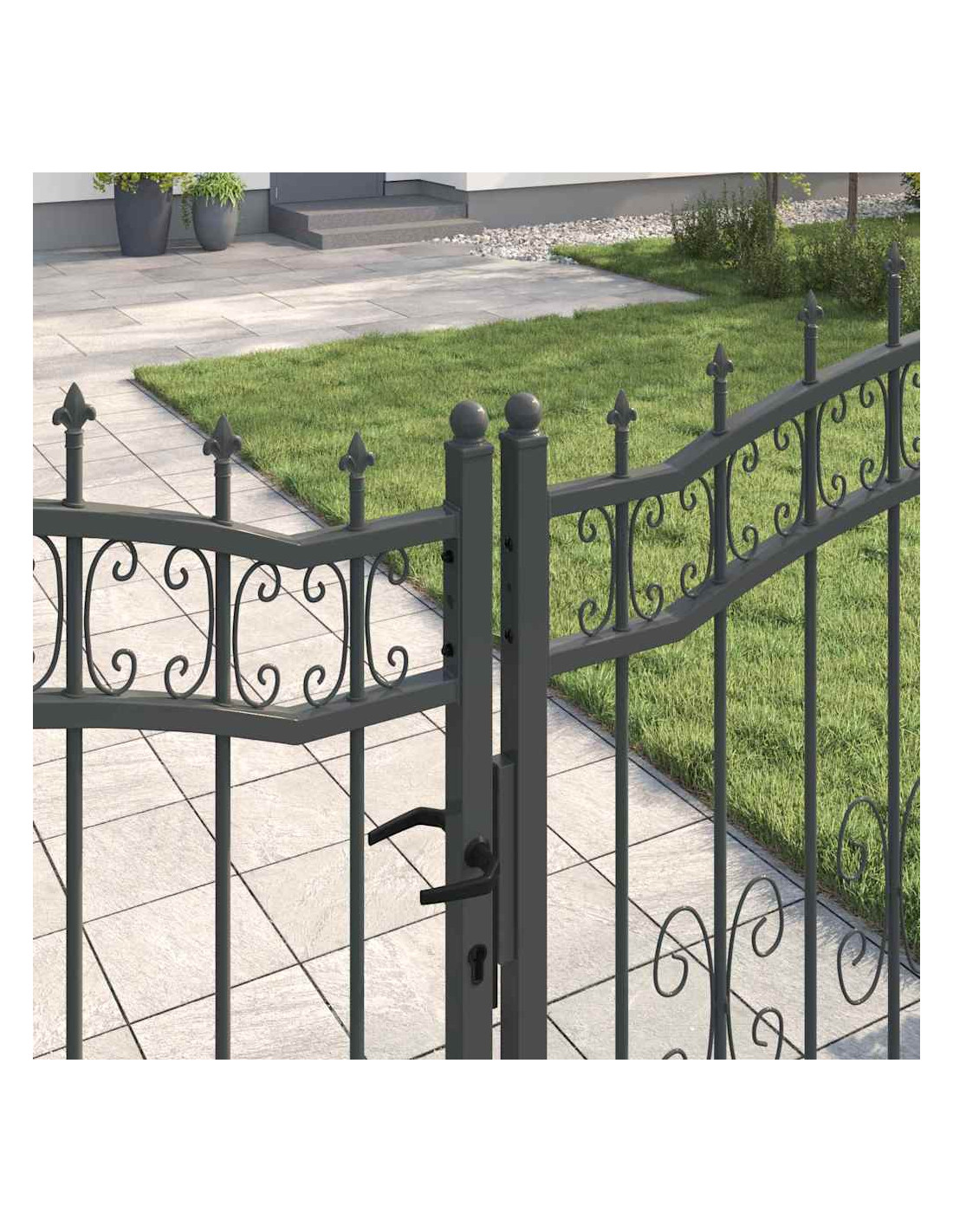 - Acciaio di qualità Questo cancello è realizzato in acciaio resistente, perfetto per affrontare il maltempo. La sua resistenza si combina con un bel design tradizionale, garantendo una lunga durata in ogni condizione.