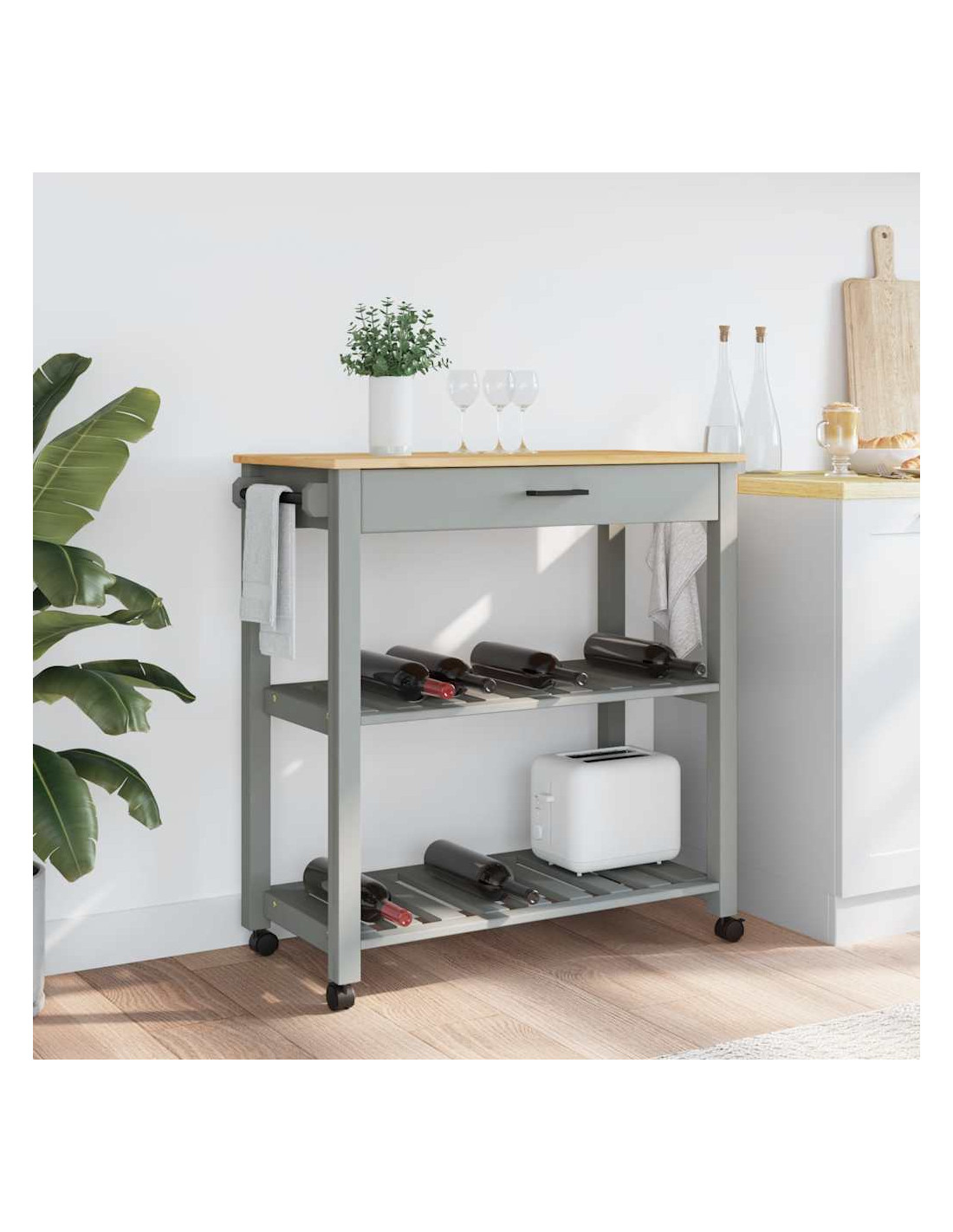 - Materiale resistente: Il legno massello di pino è un bellissimo materiale naturale. Il legno di pino ha le venature dritte, e i nodi conferiscono al materiale il suo caratteristico aspetto rustico. Realizzato in legno massello di pino, questo carrello portaoggetti da cucina è resistente e robusto.