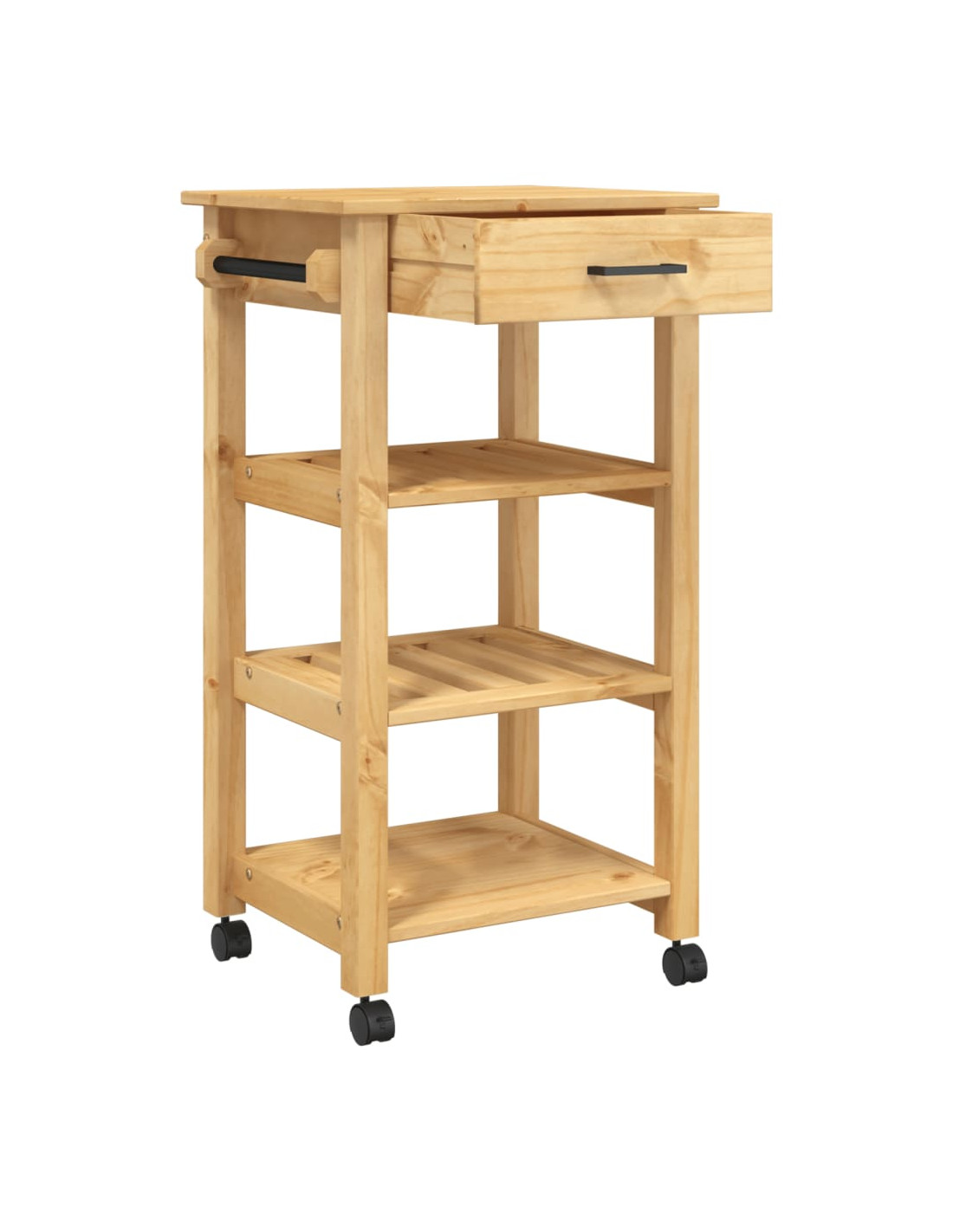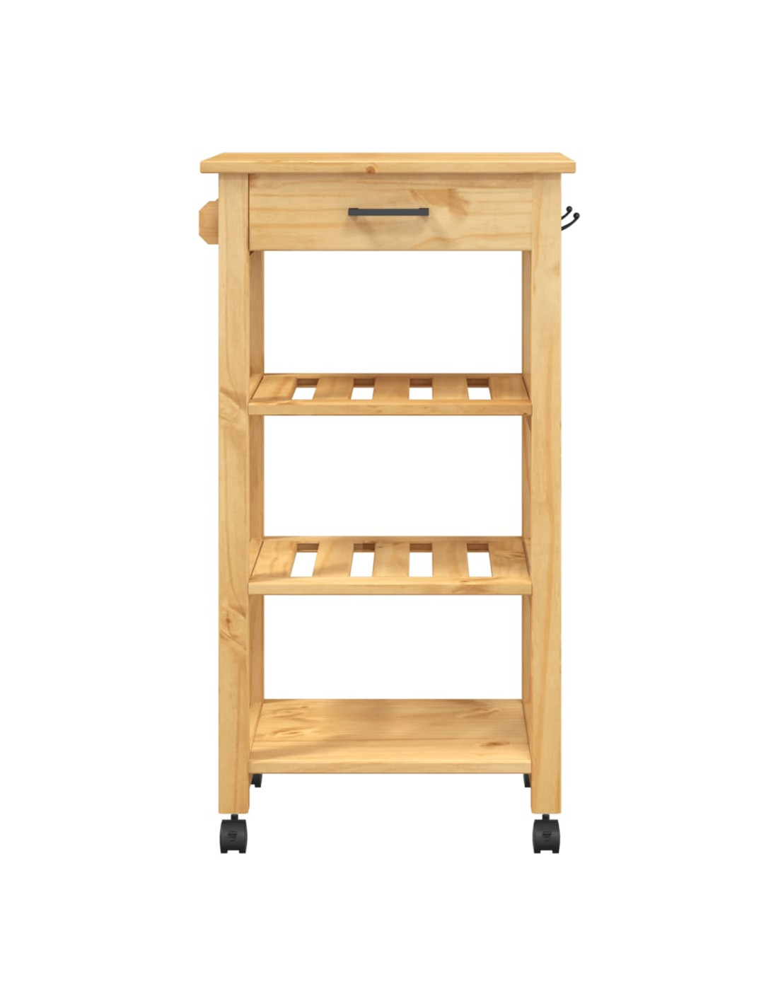 - Materiale resistente: Il legno massello di pino è un bellissimo materiale naturale. Il legno di pino ha le venature dritte, e i nodi conferiscono al materiale il suo caratteristico aspetto rustico. Realizzato in legno massello di pino, questo carrello portaoggetti da cucina è resistente e robusto.