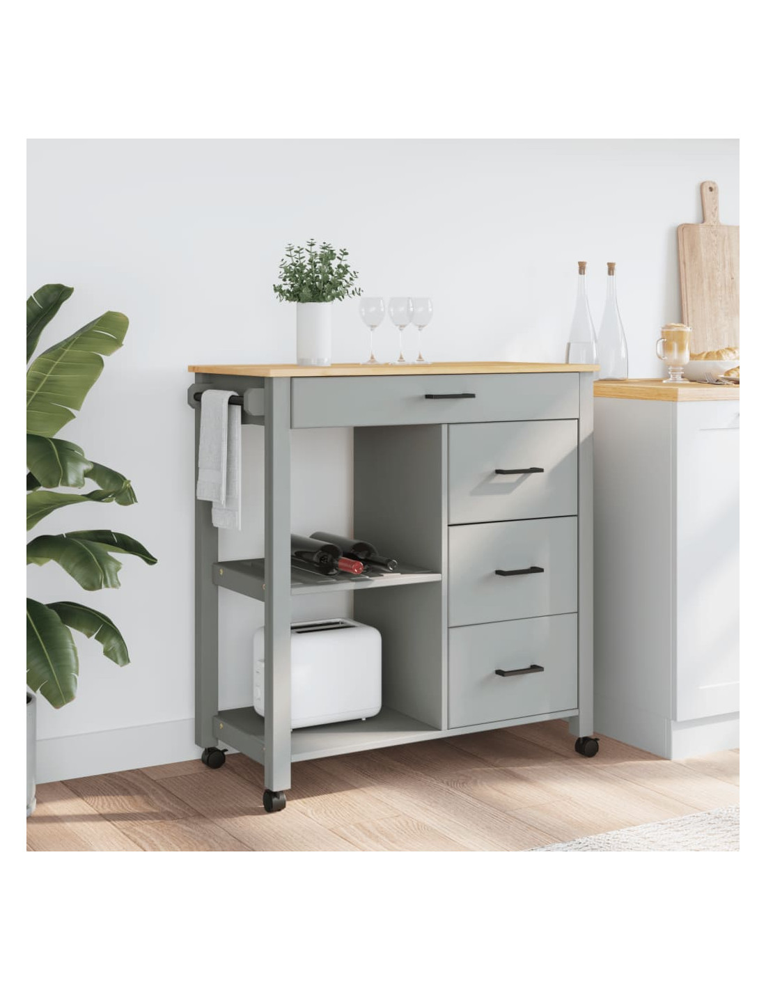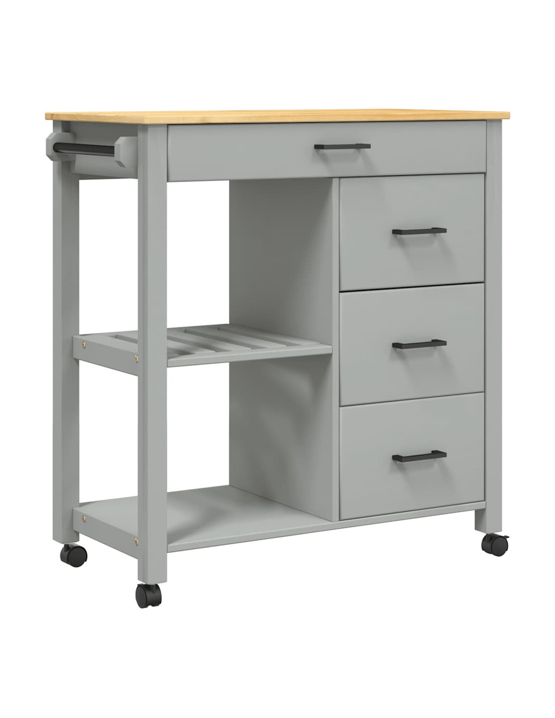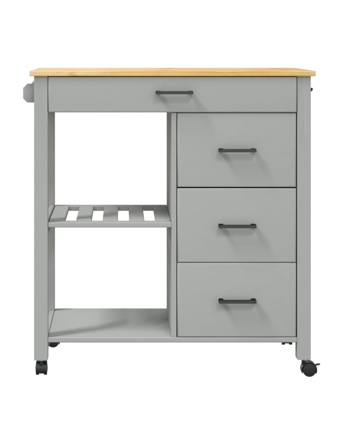 - Materiale resistente: Il legno massello di pino è un bellissimo materiale naturale. Il legno di pino ha le venature dritte, e i nodi conferiscono al materiale il suo caratteristico aspetto rustico. Realizzato in legno massello di pino, questo carrello portaoggetti da cucina è resistente e robusto.