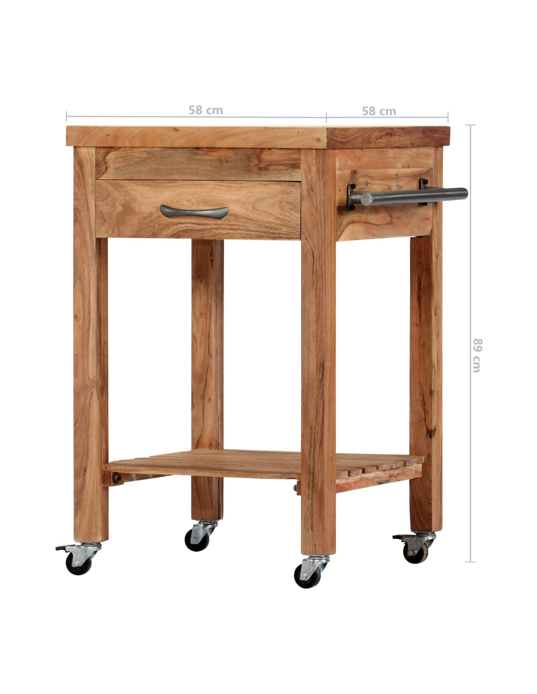 Aggiungete un tocco unico e vintage alla cucina e aumentate lo spazio dove riporre gli oggetti grazie al nostro carrello da cucina in legno massello di acacia. Potete utilizzarlo come mobile aggiuntivo dove poggiare il cibo, come tavolino di servizio o come carrello.