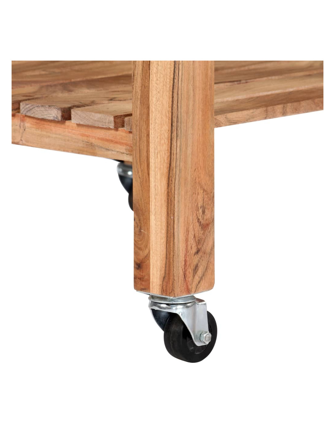 Il legno di acacia si distingue come un legno duro e, con la sua finitura naturale, rende il carrello estremamente solido e resistente. Il prodotto include 4 rotelle, di cui 2 bloccabili, che consentono di muoverlo agevolmente. Grazie ad esse il carrello può essere facilmente spostato, bloccato e riposto in modo sicuro in qualsiasi momento. Il cassetto e il ripiano inferiore offrono ampio spazio dove riporre portabottiglie, libri di cucina e altri utensili. Il porta telo sulla parte laterale è perfetto per tenere i teli da cucina a portata di mano.