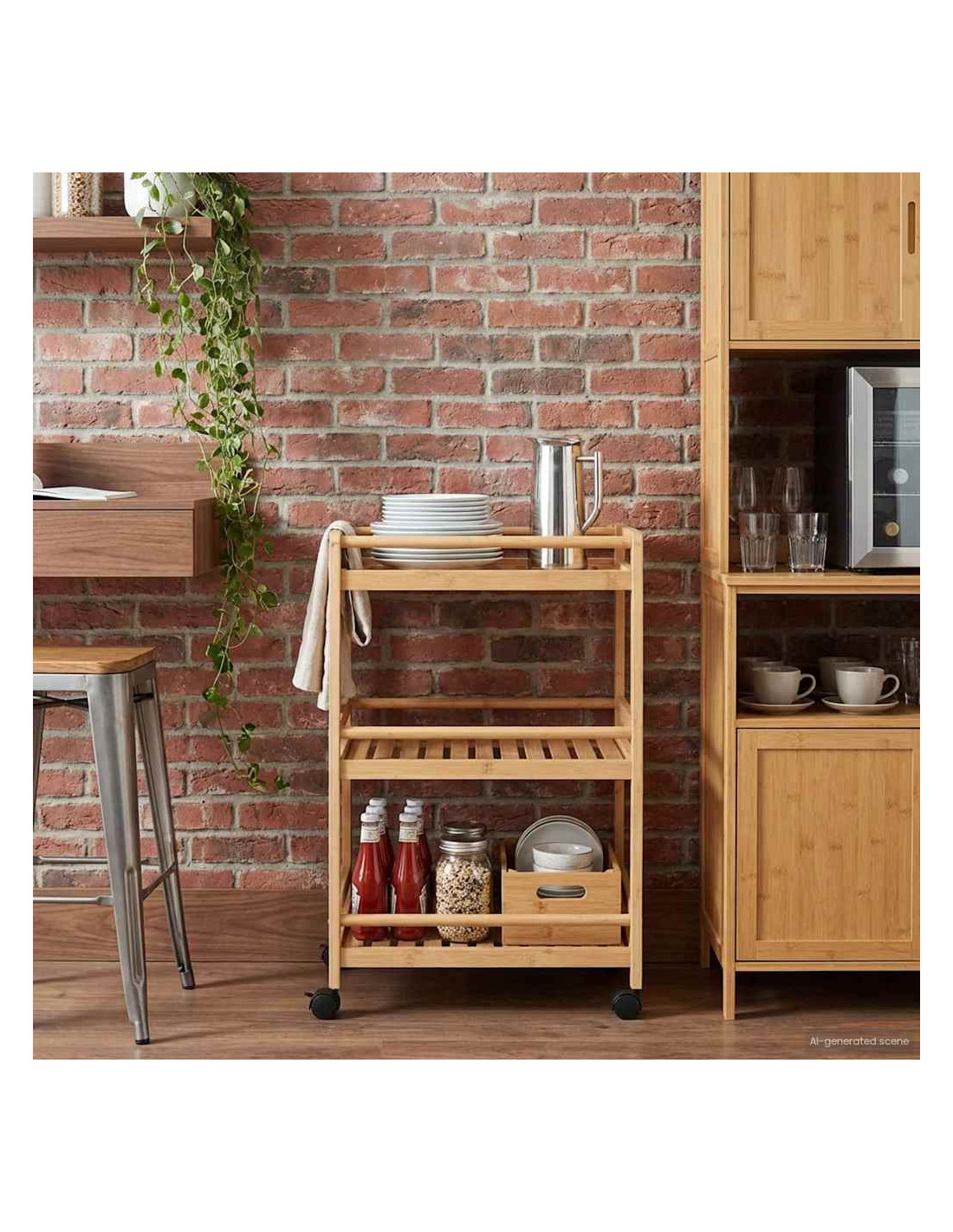 - Materiale in bambù: Porta un'eleganza naturale, il carrello è fatto di un bambù resistente, bello e robusto. Questo materiale non solo garantisce durata, ma arricchisce anche l’aspetto della tua cucina con suoi toni caldi.