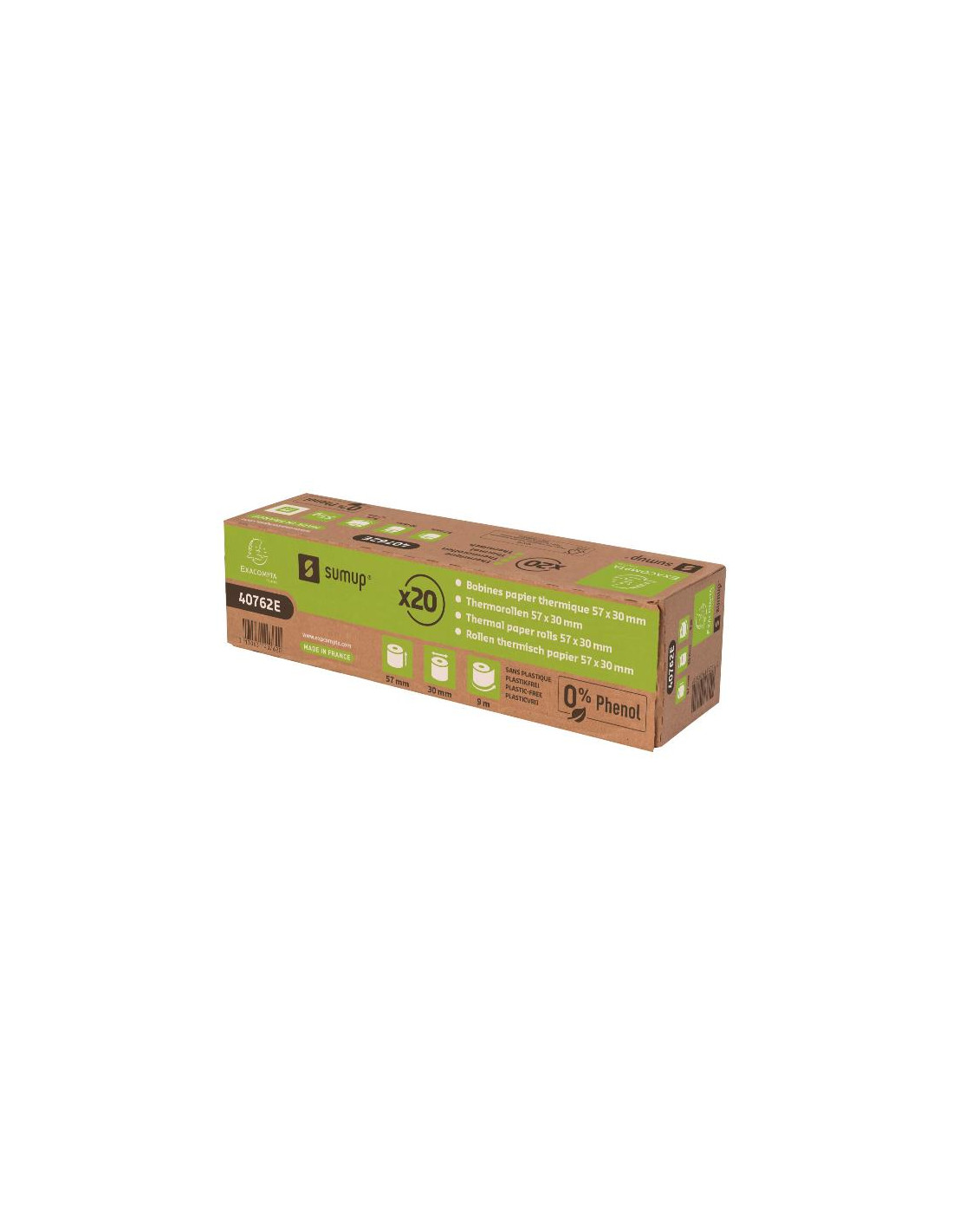 ROTOLO 57X30MM PER POS CARTA TERMICA 55G CERT.FSC UNA COPIA SENZA FENOLO SENZ ANIMA ZERO PLASTICA 9 MT BIANCO