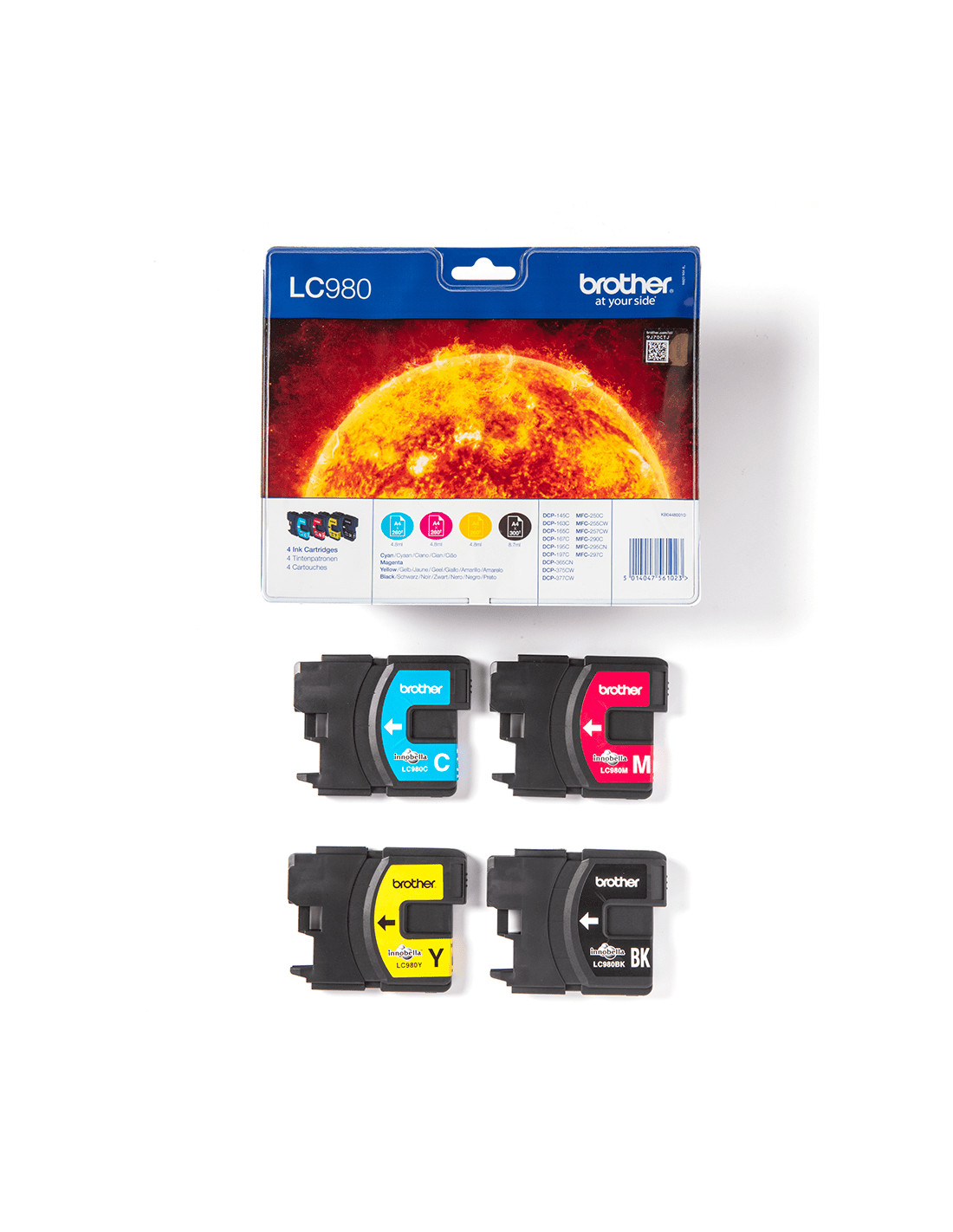 Assicurati che la sostituzione delle cartucce originali d’inchiostro Brother sia più semplice e conveniente possibile acquistando questa confezione multipla LC980VALBP. La confezione contiene cartucce LC980 d’inchiostro nero, ciano, giallo e magenta, tutte progettate per aiutarti a ottenere il meglio dalla tua stampante Brother.