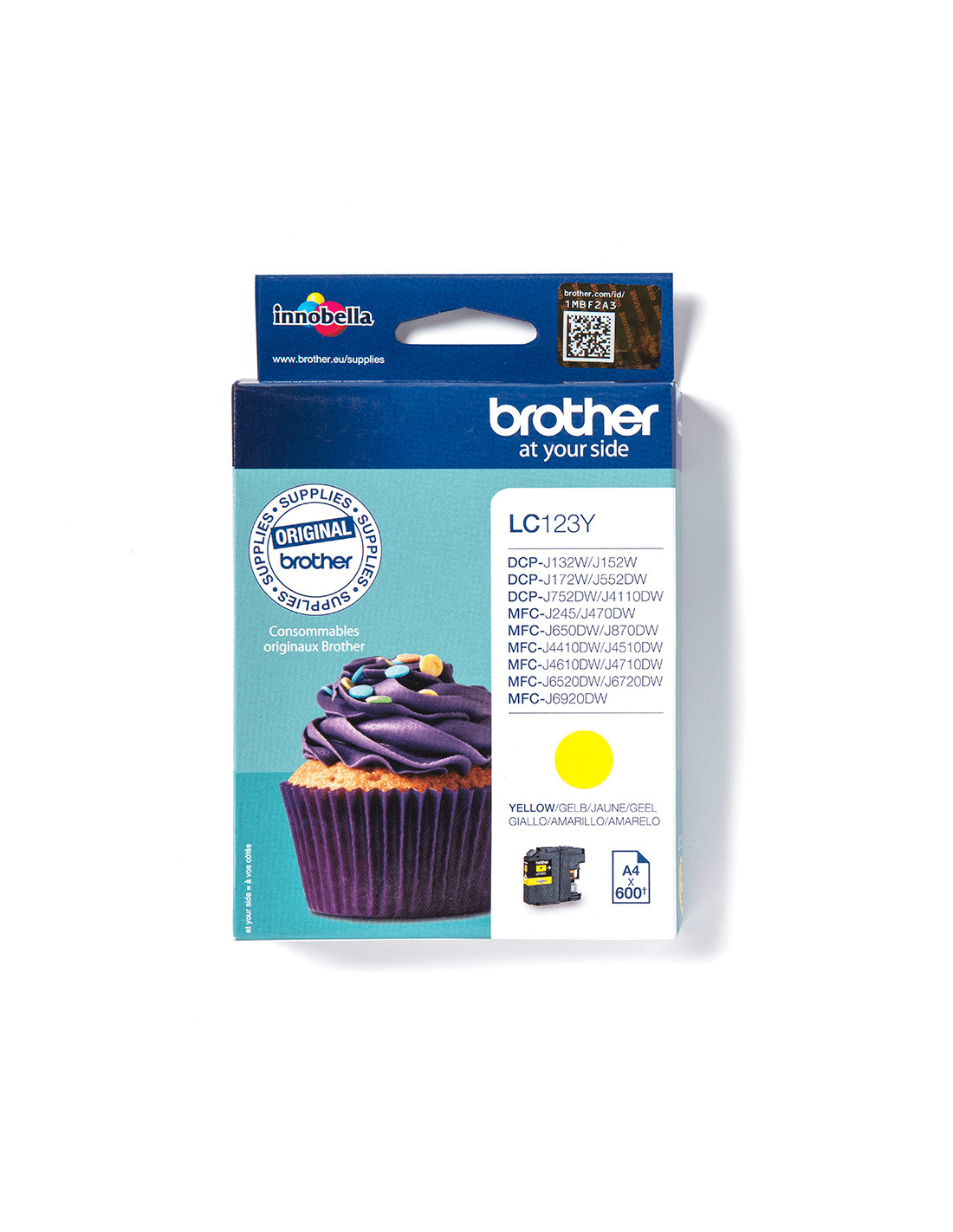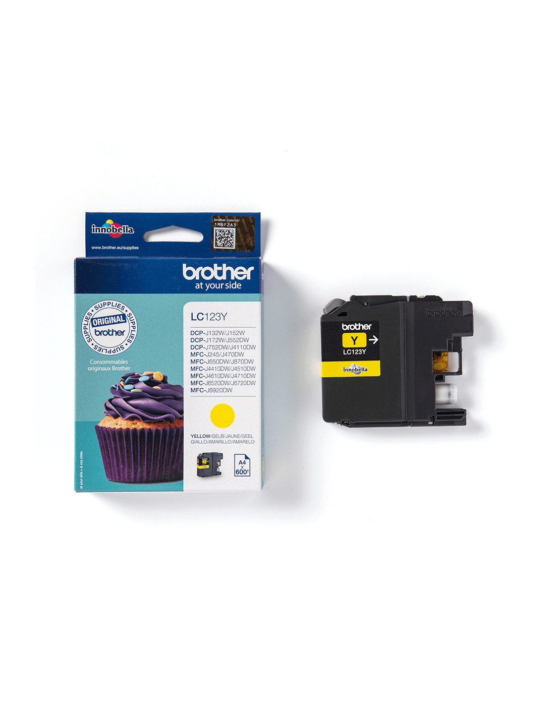 La cartuccia originale Brother LC123Y è utilizzabile con DCP-J132W, DCP-J152W, DCP-J172W, DCP-J552DW, DCP-J752DW, DCP-J4110DW, MFC-J245, MFC-J470DW, MFC-J650DW, MFC-J870DW, MFC-J4410DW, MFC-J4510DW, MFC-J4610DW, MFC-J4710DW, MFC-J6520DW, MFC-J6720DW, MFC-J6920DW.