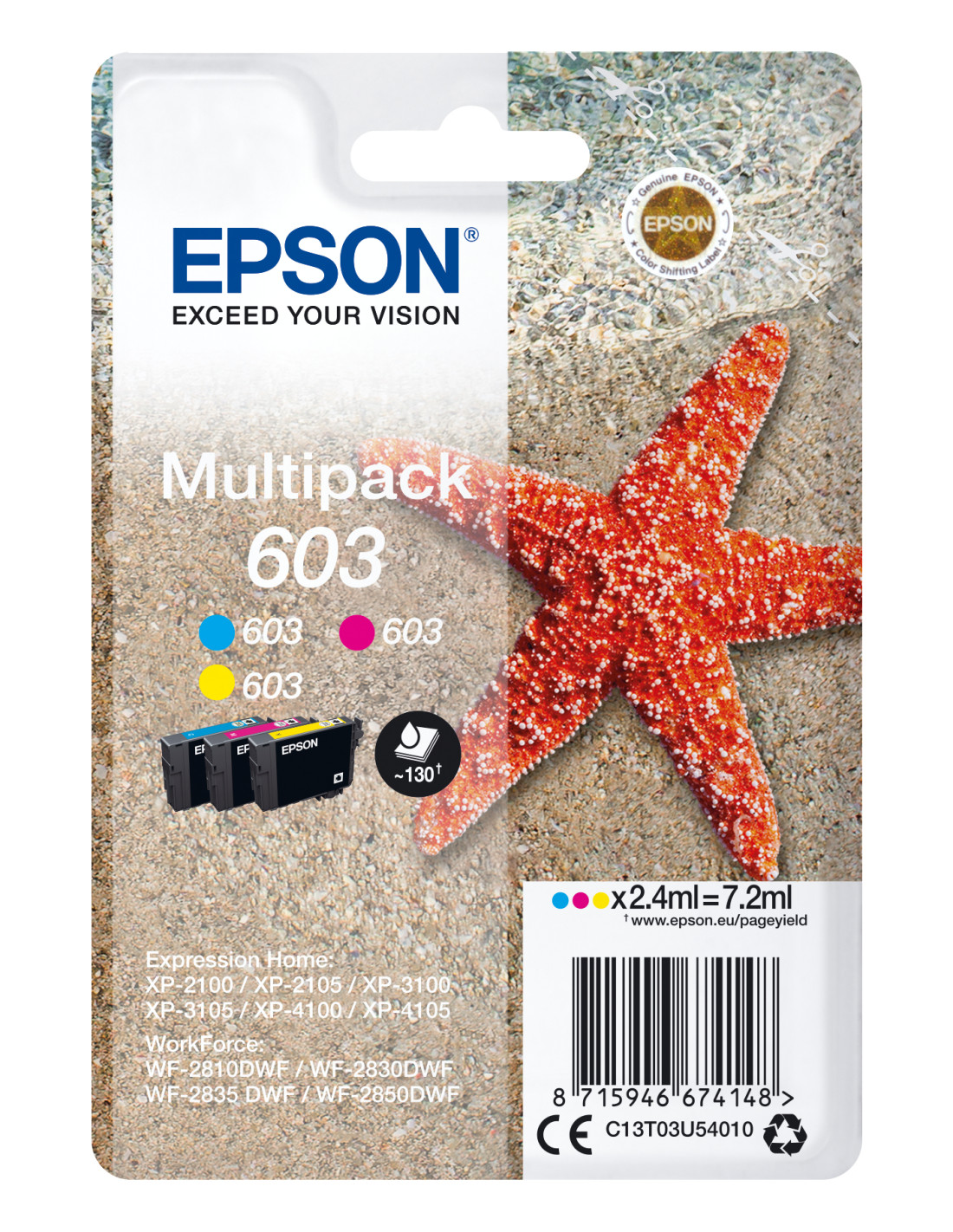 Ottieni stampe affidabili, nitide e brillanti a costi davvero ridotti utilizzando le cartucce di inchiostro a quattro colori della serie 603 di Epson. Caratterizzato da inchiostri dye a colori e inchiostro nero a pigmenti, questo sistema di cartucce consente di stampare documenti a colori ben definiti.