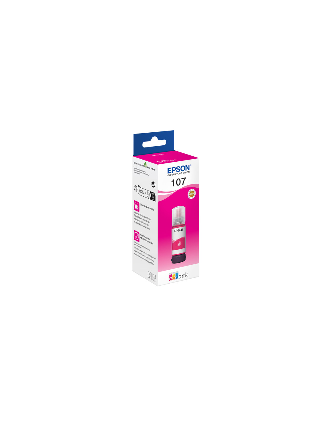 Epson 107. Tipo: Originale, Colori di stampa: Magenta, Compatibilità marca: Epson. Quantità per pacco: 1 pz, Larghezza imballo: 57 mm, Profondità imballo: 57 mm. Quantità per pallett: 1890 pz, Lunghezza del pallet: 120 cm, Ampiezza del pallet: 100 cm