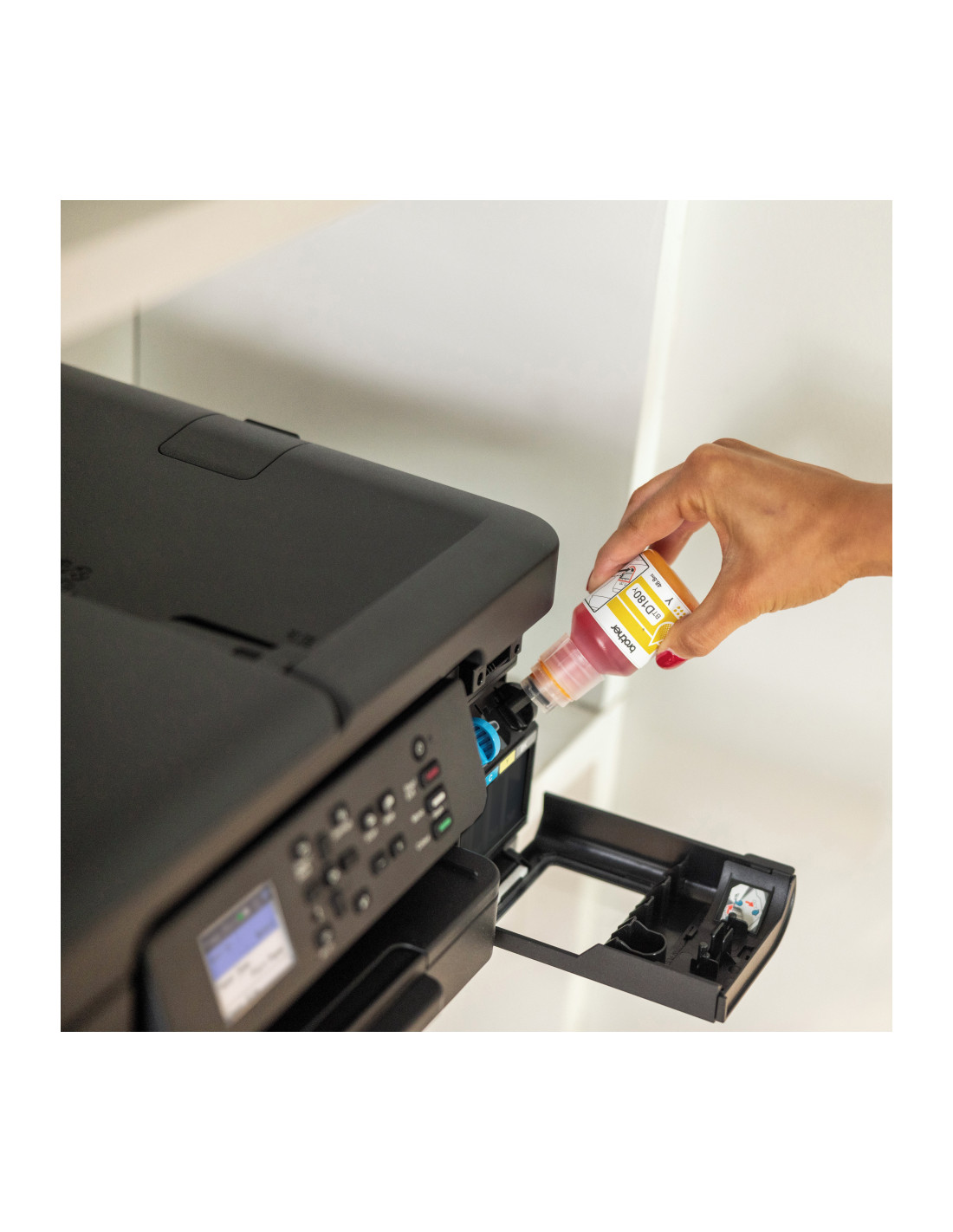 Progettato per garantire documenti di qualità a ogni stampa, il flacone di inchiostro giallo originale Brother BTD180Y offre una resa elevatissima di 5.000 pagine, eliminando così la necessità di rifornimenti periodici. Basta riempire il serbatoio di inchiostro per ottenere stampe di qualità professionale e durature.