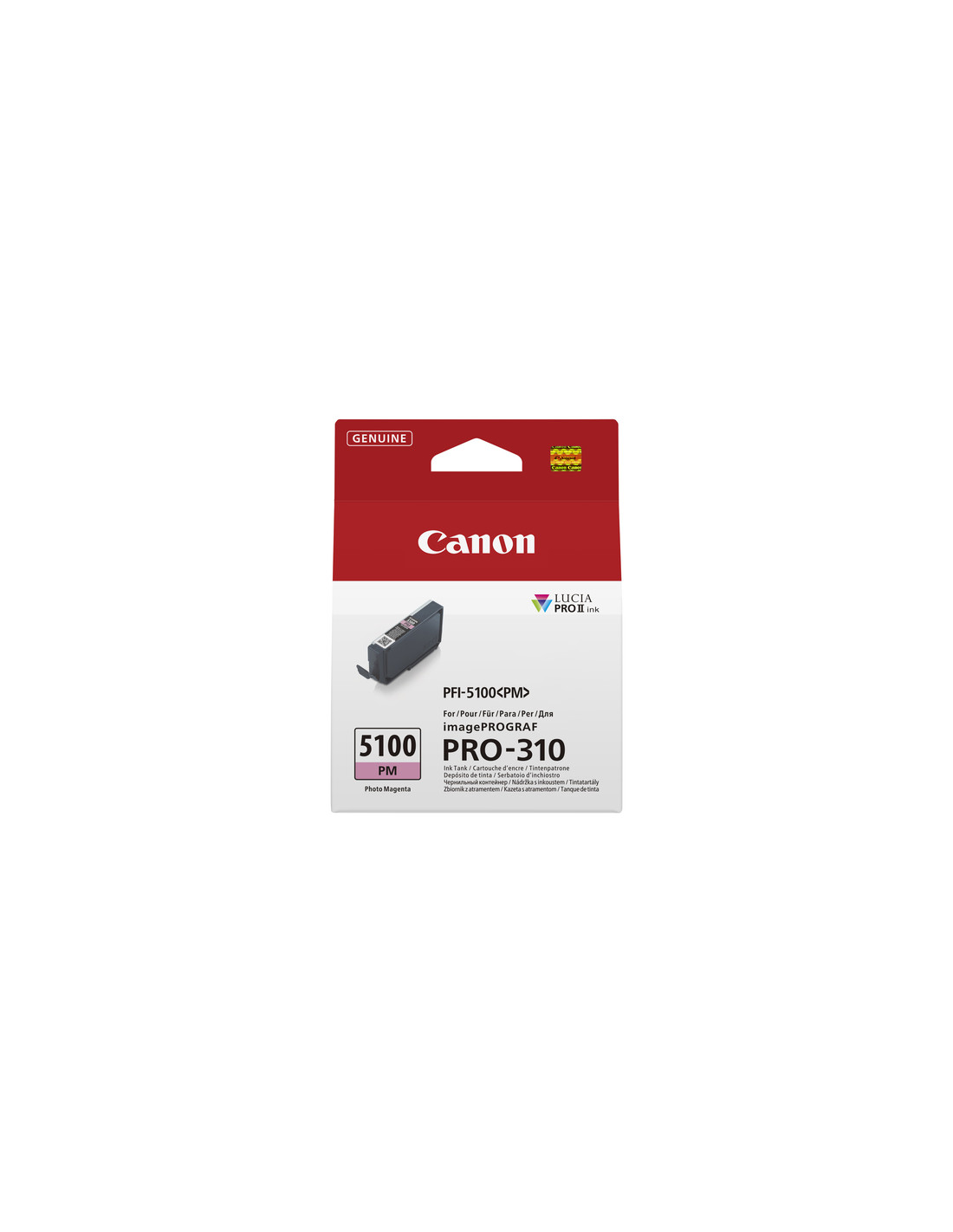 Canon PFI-5100 PM. Tipo di fornitura: Confezione singola, Volume dell'inchiostro a colori: 14,4 ml, Colori di stampa: Magenta per foto, Quantità per pacco: 1 pz