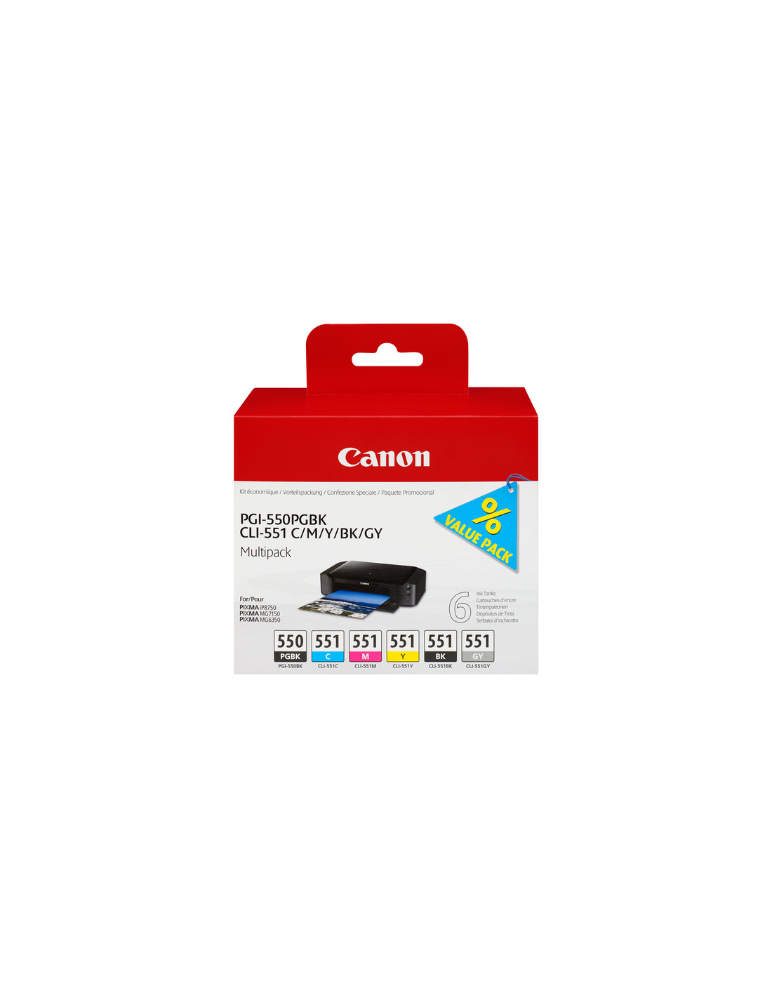 Confezione multipla di inchiostri (serbatoi di inchiostro ciano, magenta, giallo, grigio, a pigmenti e nero per fotografie) in conformità con lo standard ISO/IEC 24711¹.
