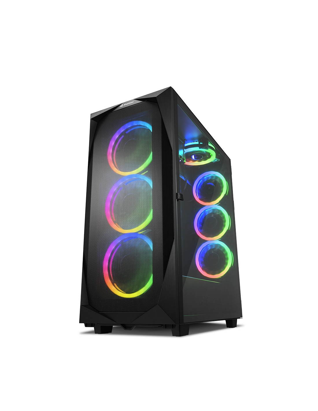Chiunque possieda un sistema di gioco esigente conosce l'essenzialità di un corretto flusso d'aria. Il REV300 è ideale per situazioni del genere. Sette ventole sono già preinstallate nel case, dando la possibilità all'utente di poter beneficiare fin da subito di un perfetto raffreddamento dell'hardware. Una griglia si estende per tutta l'area del pannello frontale, lasciando spazio a grandi quantità d'aria, attirata attraverso tre ventole a LED RGB da 140 mm. Tre ulteriori ventole a LED RGB da 120 mm sono installate sul retro del case. Grazie alla ventola a LED RGB da 120 mm aggiuntiva posizionata sotto il pannello superiore, l'efficace flusso d'aria raffredda i sistemi anche nelle sessioni più impegnative. Nel caso in cui sia necessario il raffreddamento ad acqua, è possibile installare contemporaneamente due radiatori all'interno del REV300. Un radiatore da 360 mm trova spazio nel retro, mentre dietro il pannello frontale è possibile inserire addirittura un gigantesco radiatore da 420 mm.