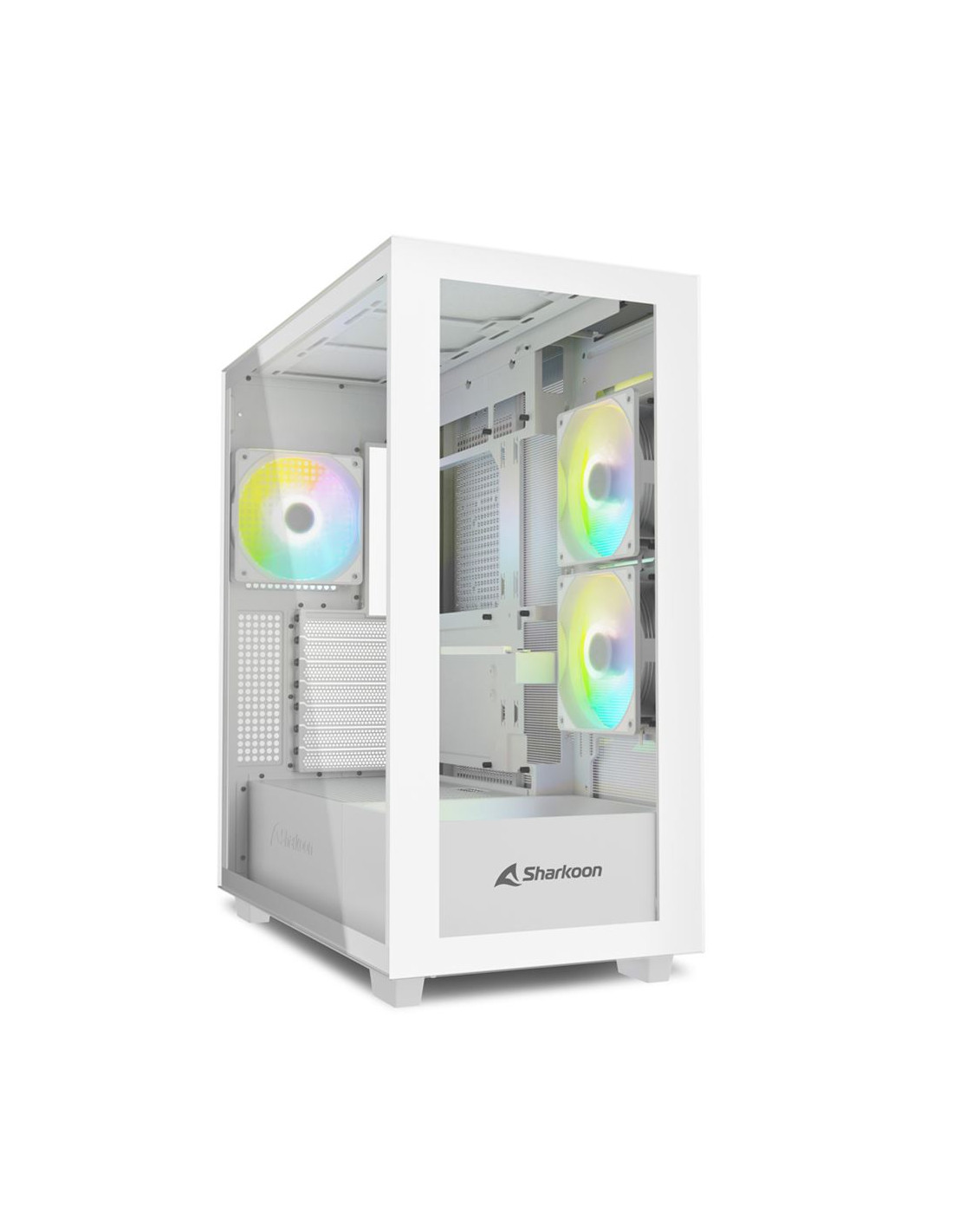 Grazie al suo pannello frontale e a quello laterale, in vetro temperato, il Rebel C60 RGB è la vetrina ideale per un hardware ad alte prestazioni. Per garantire un flusso d’aria ottimale, il case dispone di quattro ventole PWM RGB addressable da 120 mm, preinstallate: una sul pannello posteriore, due accanto al vassoio della scheda madre e una sul lato inferiore. Tutte insieme garantiscono un’efficiente circolazione dell’aria, pompando aria fresca attraverso il filtro rimovibile sotto al case ed espellendola attraverso il pannello laterale.