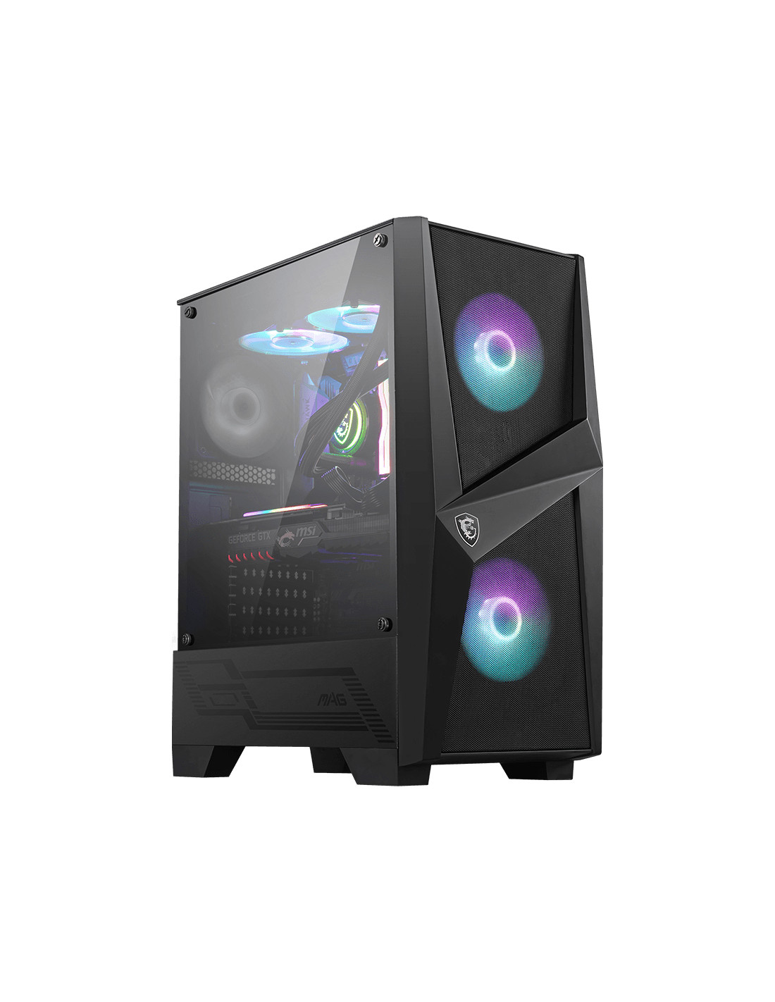 MSI MAG FORGE 100R. Fattore di forma: Midi Tower, Tipo: PC, Colore del prodotto: Nero, Trasparente. Posizione alimentazione: Fondo. Ventole anteriori installate: 2x 120 mm, Diametro delle ventole frontali supportato: 120,140 mm, Descrizione dei ventilatori anteriori supportati: addressable RGB LED. Dimensioni di hard disk drive supportati: 2.5,3.5". Larghezza: 210 mm, Profondità: 421 mm, Altezza: 499 mm