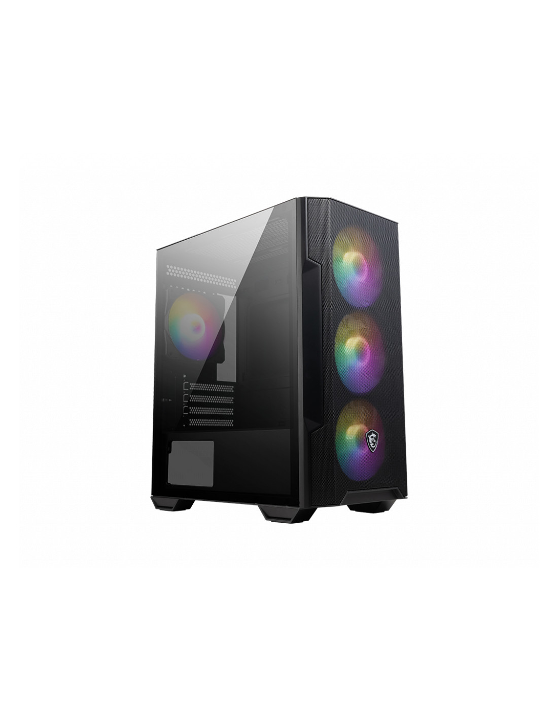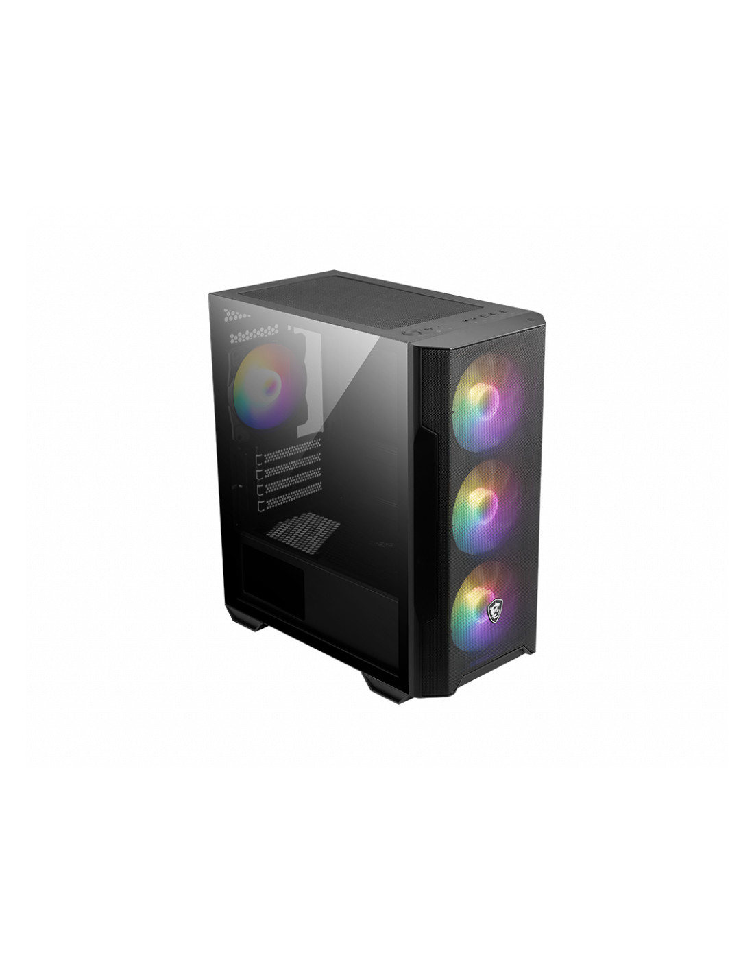 MSI MAG Forge M100R. Fattore di forma: Midi Tower, Tipo: PC, Colore del prodotto: Nero, Trasparente. Posizione alimentazione: Fondo. Ventole anteriori installate: 3x 120 mm, Diametro delle ventole frontali supportato: 120 mm, Rear fans installed: 1x 120 mm. Dimensioni di hard disk drive supportati: 2.5,3.5". Larghezza: 388 mm, Profondità: 200 mm, Altezza: 423 mm