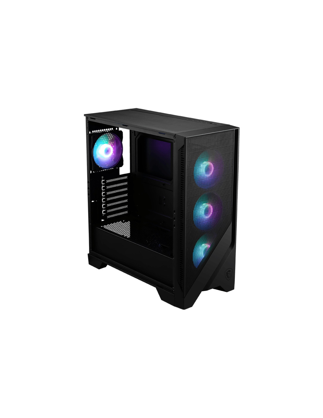 MSI MAG Forge 320R AIRFLOW. Fattore di forma: Micro Tower, Tipo: PC, Colore del prodotto: Nero, Trasparente. Posizione alimentazione: Fondo. Ventole anteriori installate: 3x 120 mm, Diametro delle ventole frontali supportato: 120,140 mm, Diametro delle ventole laterali supportato: 120 mm. Dimensioni di hard disk drive supportati: 2.5,3.5". Larghezza: 472,5 mm, Profondità: 210 mm, Altezza: 498 mm