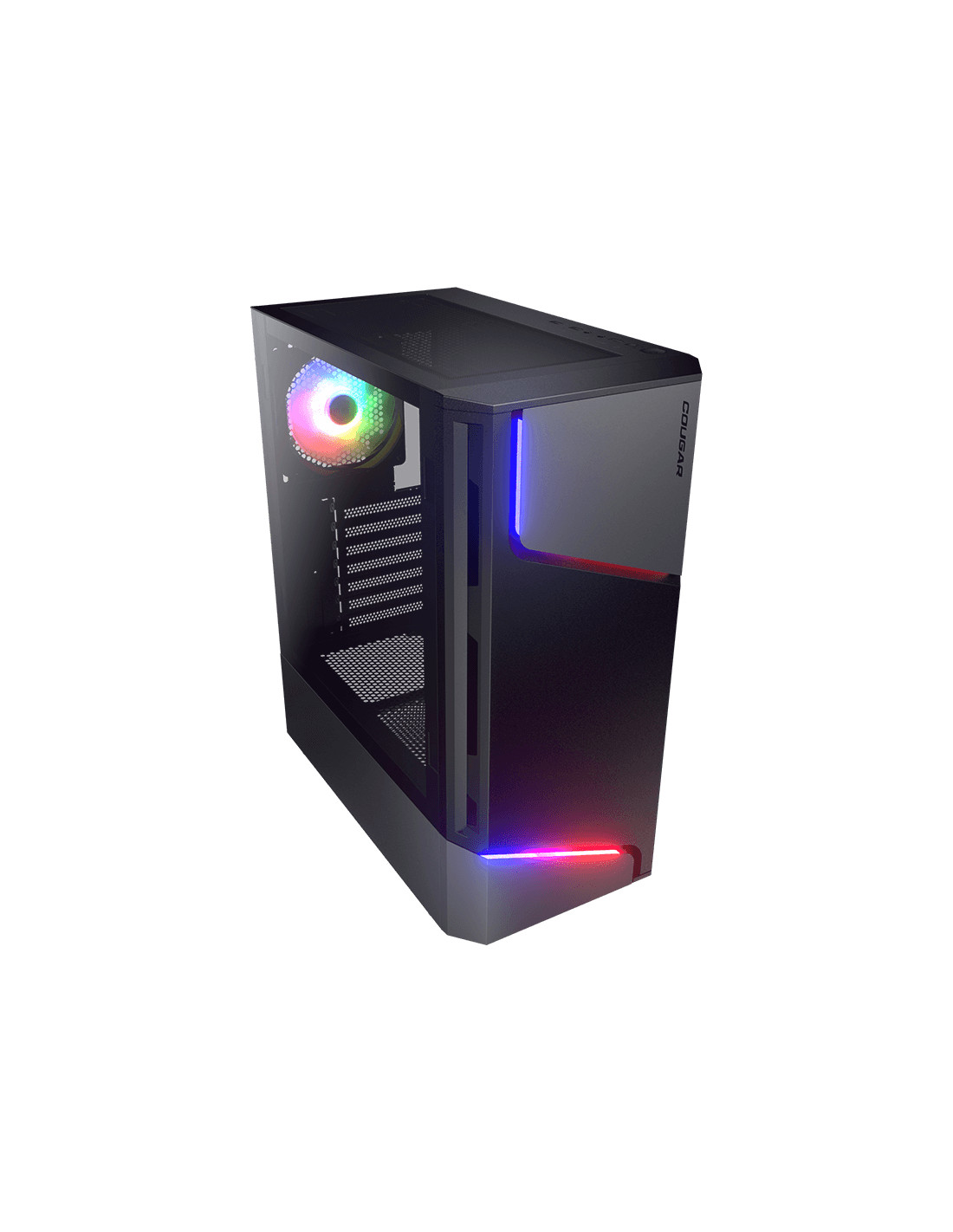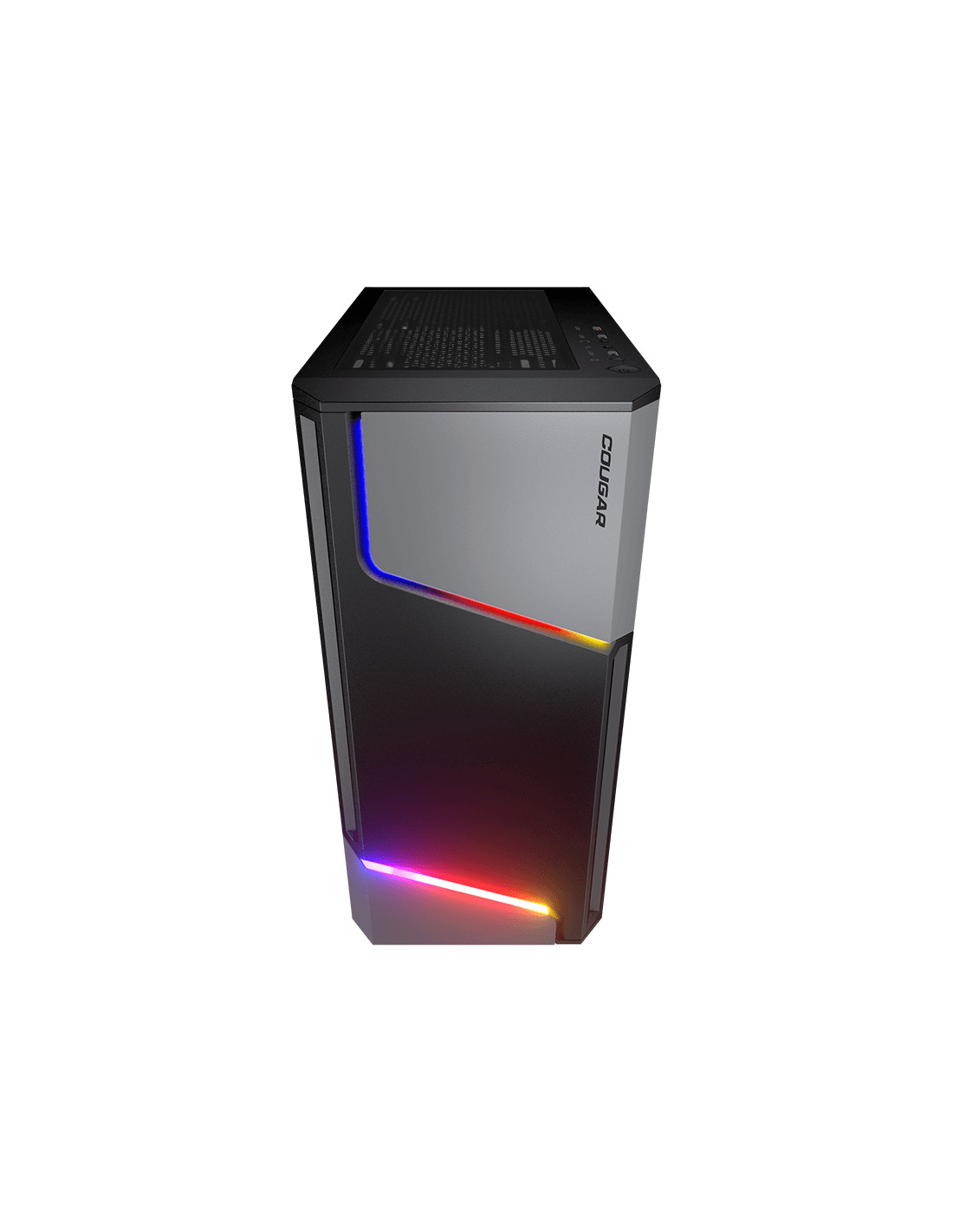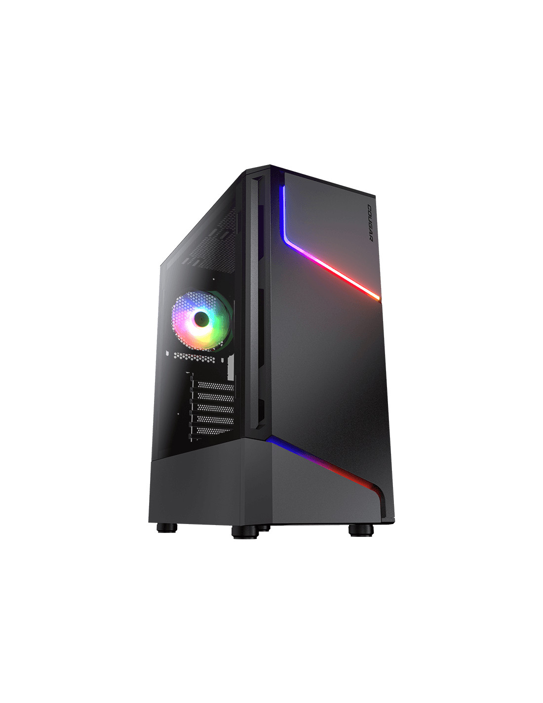 COUGAR MX360 RGB. Fattore di forma: Midi Tower, Tipo: PC, Colore del prodotto: Nero. Diametro delle ventole frontali supportato: 120,140 mm, Rear fans installed: 1x 120 mm, Diametro delle ventole posteriori supportato: 120 mm. Dimensioni di hard disk drive supportati: 2.5,3.5", Dimensione SSD: 2.5". Larghezza: 210 mm, Profondità: 378 mm, Altezza: 460 mm. Larghezza imballo: 267 mm, Profondità imballo: 510 mm, Altezza imballo: 440 mm