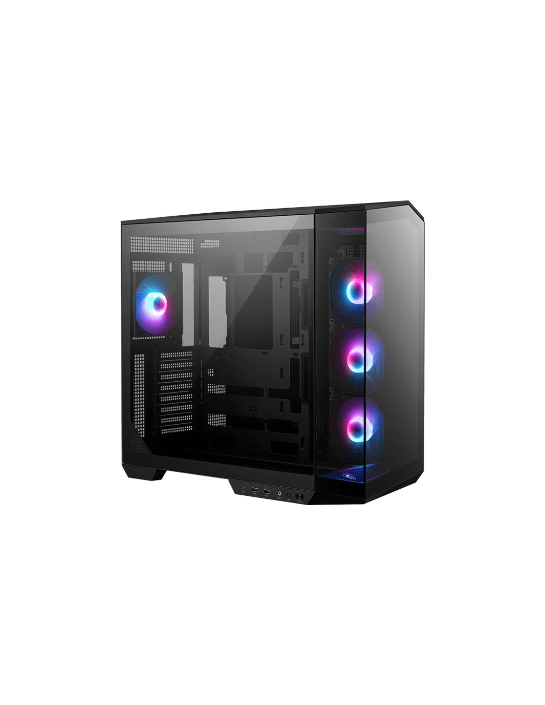 MSI MAG Pano 100R PZ. Fattore di forma: Midi Tower, Tipo: PC, Colore del prodotto: Nero. Posizione alimentazione: Fondo, Fattori di forma di alimentazione supportati: ATX. Ventole laterali installate: 3x 120 mm, Diametro delle ventole laterali supportato: 120,140 mm, Rear fans installed: 1x 120 mm. Dimensioni di hard disk drive supportati: 2.5,3.5". Larghezza: 290 mm, Profondità: 518,7 mm, Altezza: 482 mm
