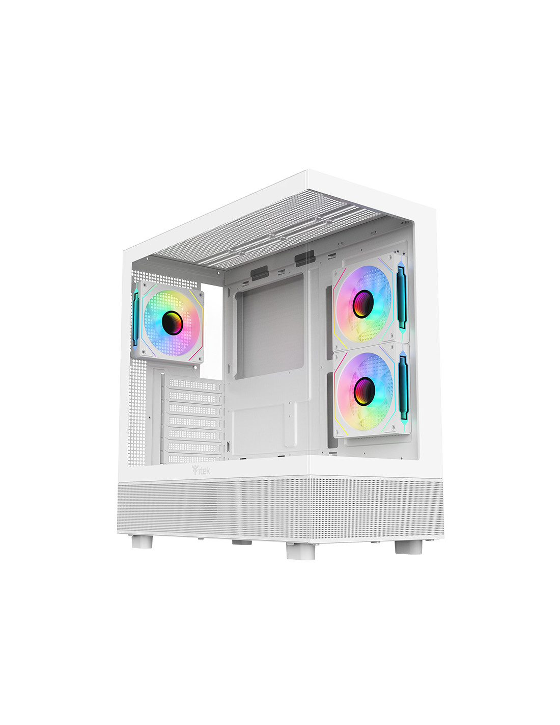 Itek SHOWBUI 42W è stato progettato per soddisfare le richieste degli utenti che hanno bisogno di estetica, performance, versatilità, spazio e facilità di assemblaggio in un'unica soluzione. La paratia frontale e laterale sono in vetro temperato per mostrare le componenti all'interno entrambe con apertura/chiusura ad incastro, senza viti! Il vano che ospita l'alimentatore e i drive è tutto completamente traforato e separato rispetto al resto del cabinet dove internamente lo spazio è tantissimo, infatti è possibile installare schede video di ultima generazione di lunghezza fino a 410mm, dissipatori alti 181mm, liquid cooling fino a 360mm, diverse ventole aggiuntive e il cable management è di 29mm. In dotazione sono presenti 3 ventole ARGB di ultimissima generazione per una resa estetica al top e un air flow ottimale. Tutte gestite dal comodo HUB e, in alternativa, dal tasto reset o direttamente dalla motherboard. Molto comodo il posizionamento dei collegamenti audio, 2 porte USB 3.0 e una Type-C nella parte superiore del case!
