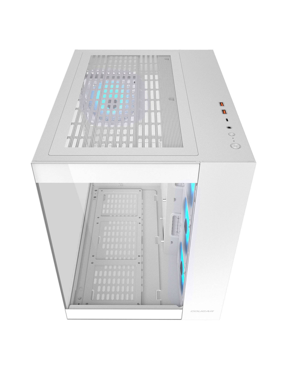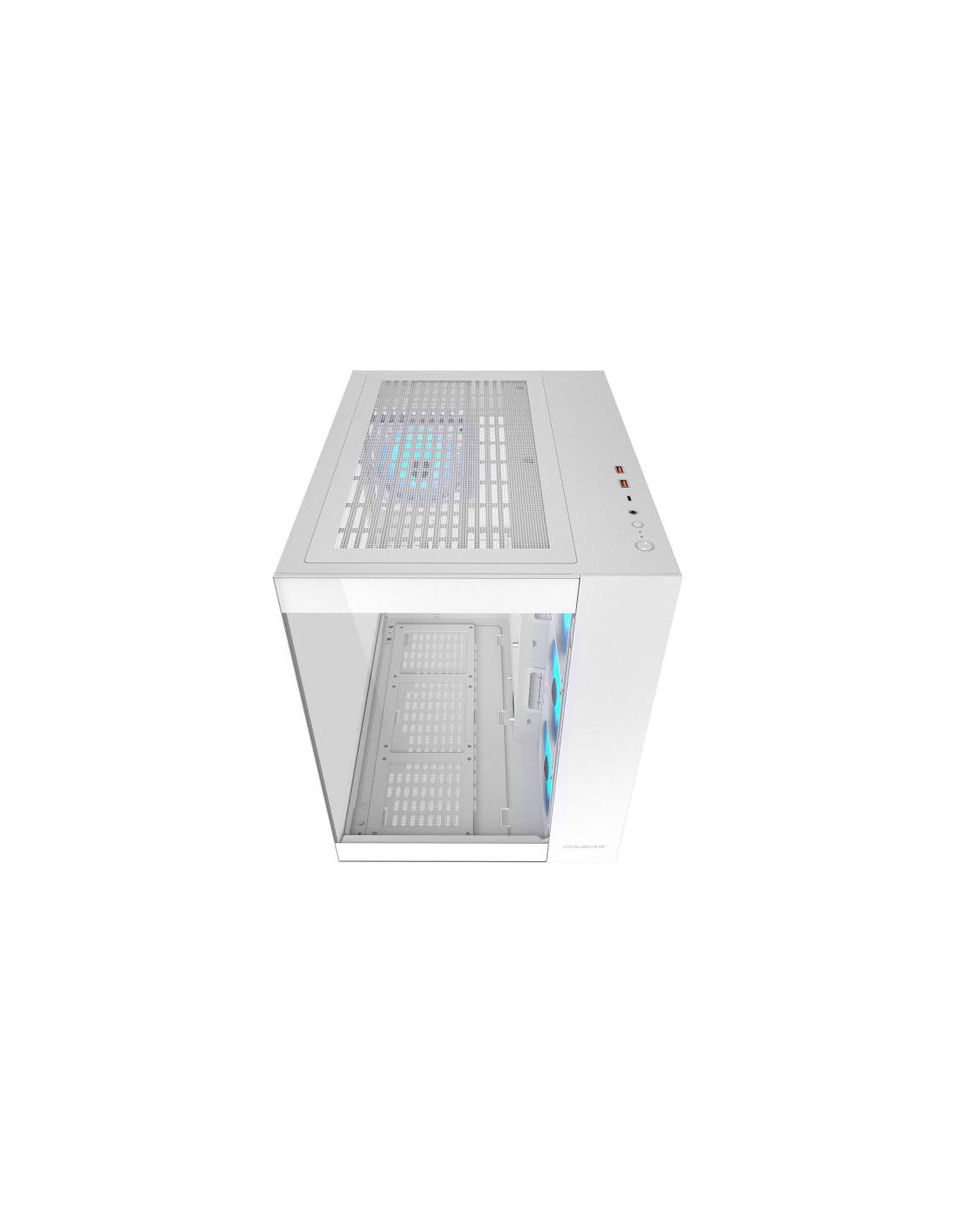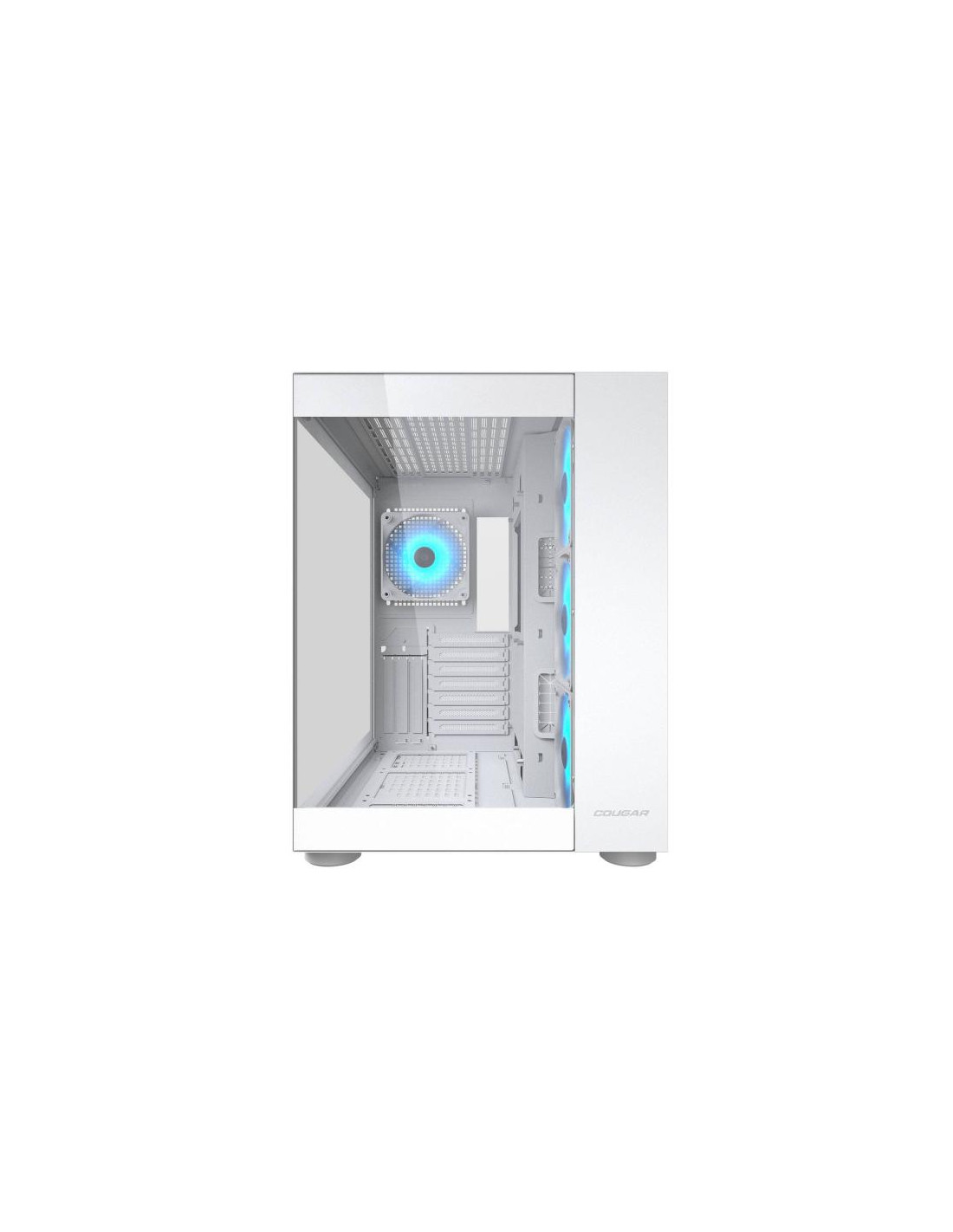 COUGAR CGR-5KA1W-RGB. Fattore di forma: Midi Tower, Tipo: PC, Colore del prodotto: Bianco. Ventole laterali installate: 3x 120 mm, Diametro delle ventole laterali supportato: 120,140 mm, Rear fans installed: 1x 120 mm. Dimensioni di hard disk drive supportati: 2.5,3.5". Larghezza: 300 mm, Profondità: 400 mm, Altezza: 415 mm. Larghezza imballo: 421 mm, Profondità imballo: 487 mm, Altezza imballo: 543 mm