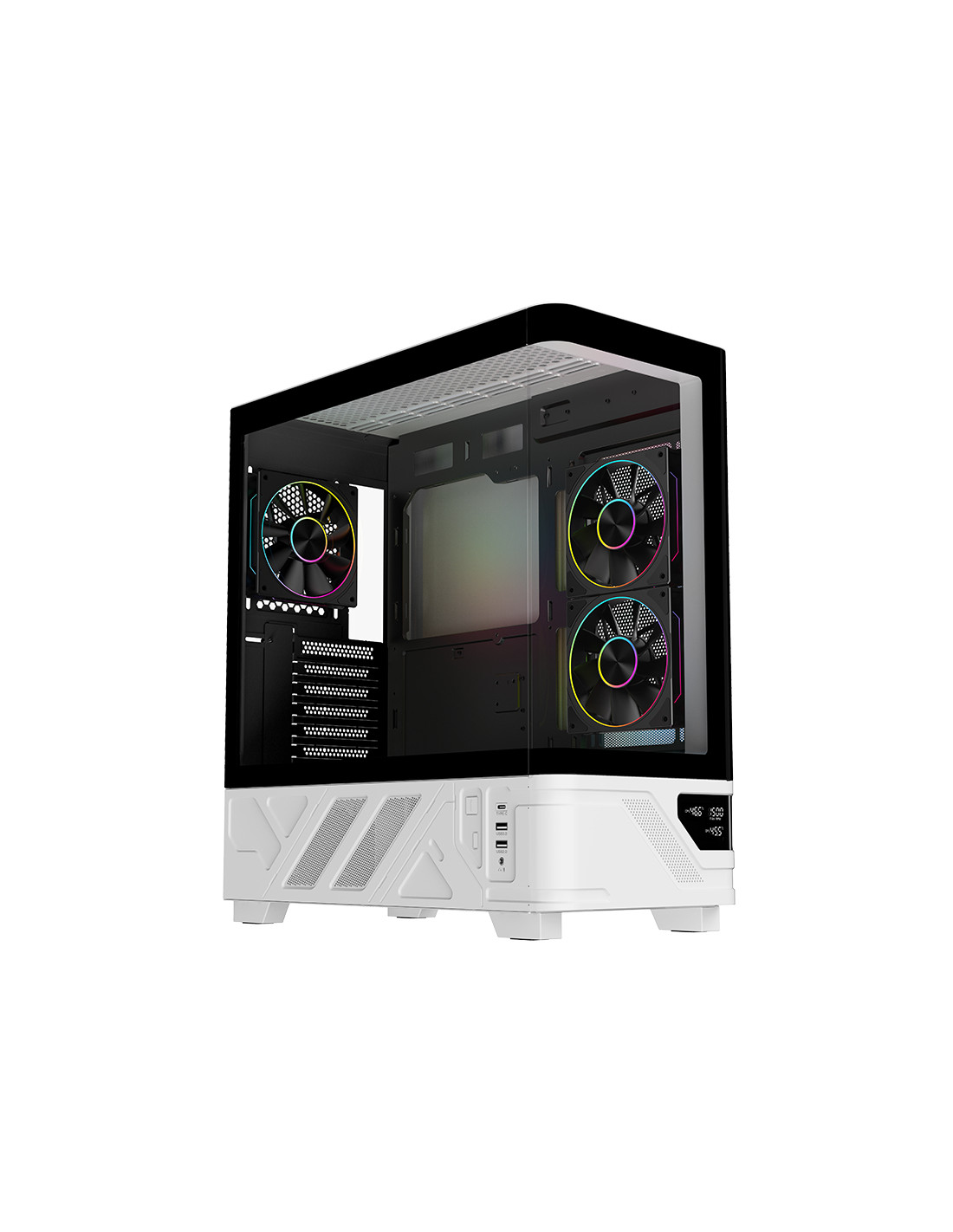 itek NETRON CURVED è un cabinet moderno, con tanto carattere e uno stile unico. E' dotato di un comodissimo display digitale per controllare la velocità delle ventole e la temperatura di CPU e GPU, installando il software che trovate sul sito web. Il doppio colore Black & White lo rende perfetto per assemblare componenti di entrambi i colori, a voi la scelta. La paratia frontale e laterale con design curvato sono in vetro scuro temperato ad incastro, senza viti! Internamente lo spazio è tantissimo, infatti è possibile installare schede video di ultima generazione di lunghezza fino a 410mm, dissipatori alti 170mm, liquid cooling fino a 360mm, diverse ventole aggiuntive e il cable management è di 27mm. In dotazione sono presenti 3 ventole ARGB moderne per una resa estetica al top e un air flow ottimale; tutte gestite dal comodo HUB con telecomando e, in alternativa, dal tasto LED o direttamente dalla motherboard. Sono presenti 2 porte USB 3.0 e una TypeC nella parte inferiore del case!