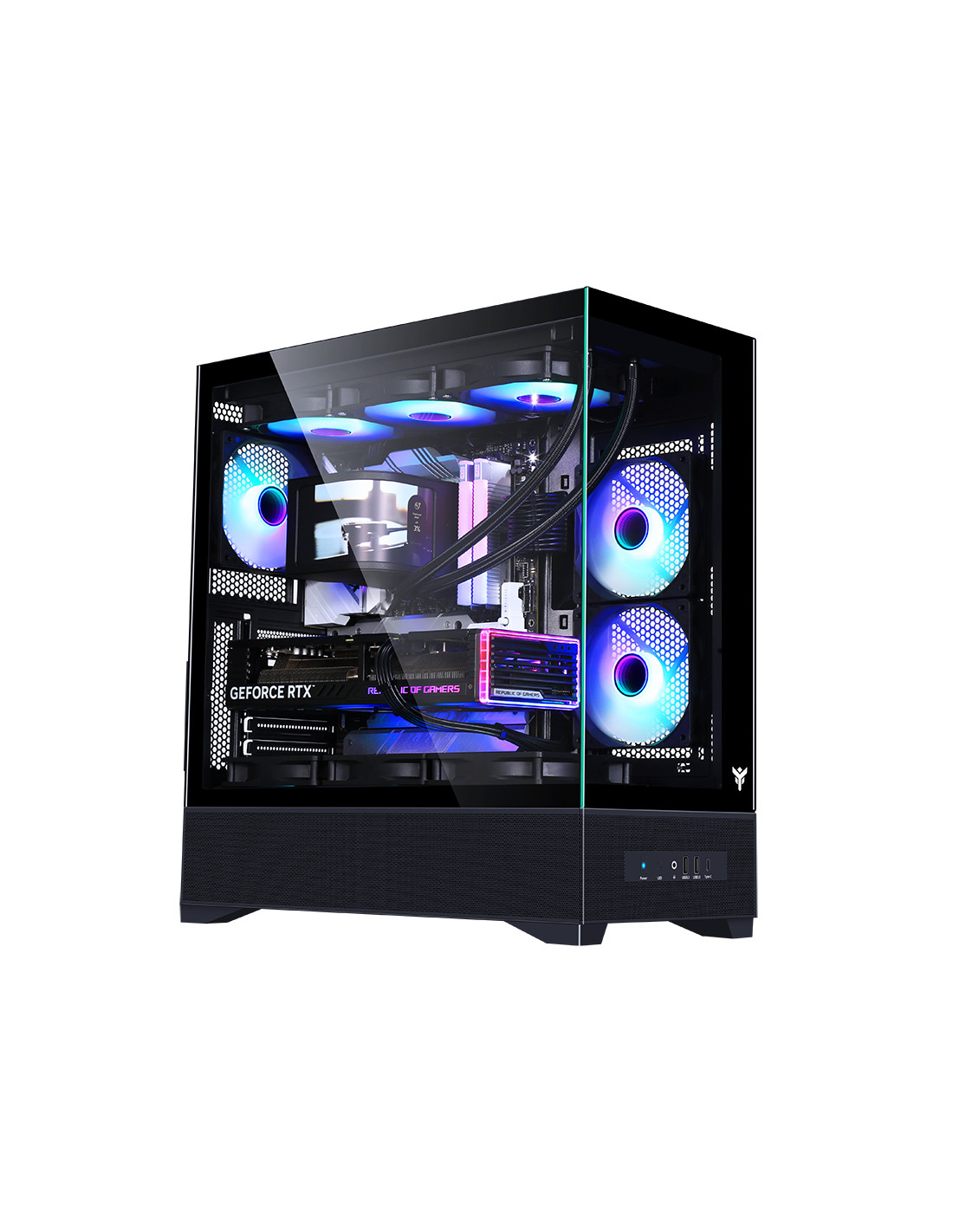 Itek SHOWBUI 37B è stato progettato per soddisfare le richieste degli utenti che hanno bisogno di estetica, performance, versatilità, spazio e facilità di assemblaggio in un'unica soluzione. La paratia frontale e laterale sono in vetro temperato per mostrare le componenti all'interno entrambe con apertura/chiusura ad incastro, senza viti! Il vano che ospita l'alimentatore e i drive è tutto completamente traforato e separato rispetto al resto del cabinet dove internamente lo spazio è tantissimo, infatti è possibile installare schede video di ultima generazione di lunghezza fino a 435mm, dissipatori alti 165mm, liquid cooling fino a 360mm, diverse ventole aggiuntive e il cable management è di 30mm. In dotazione sono presenti 3 ventole ARGB di ultimissima generazione per una resa estetica al top e un air flow ottimale. Tutte gestite dal comodo HUB e, in alternativa, dal tasto LED sul frontale o direttamente dalla motherboard. Sono presenti 2 porte USB 3.0 e una Type-C nella parte inferiore frontale del case!
