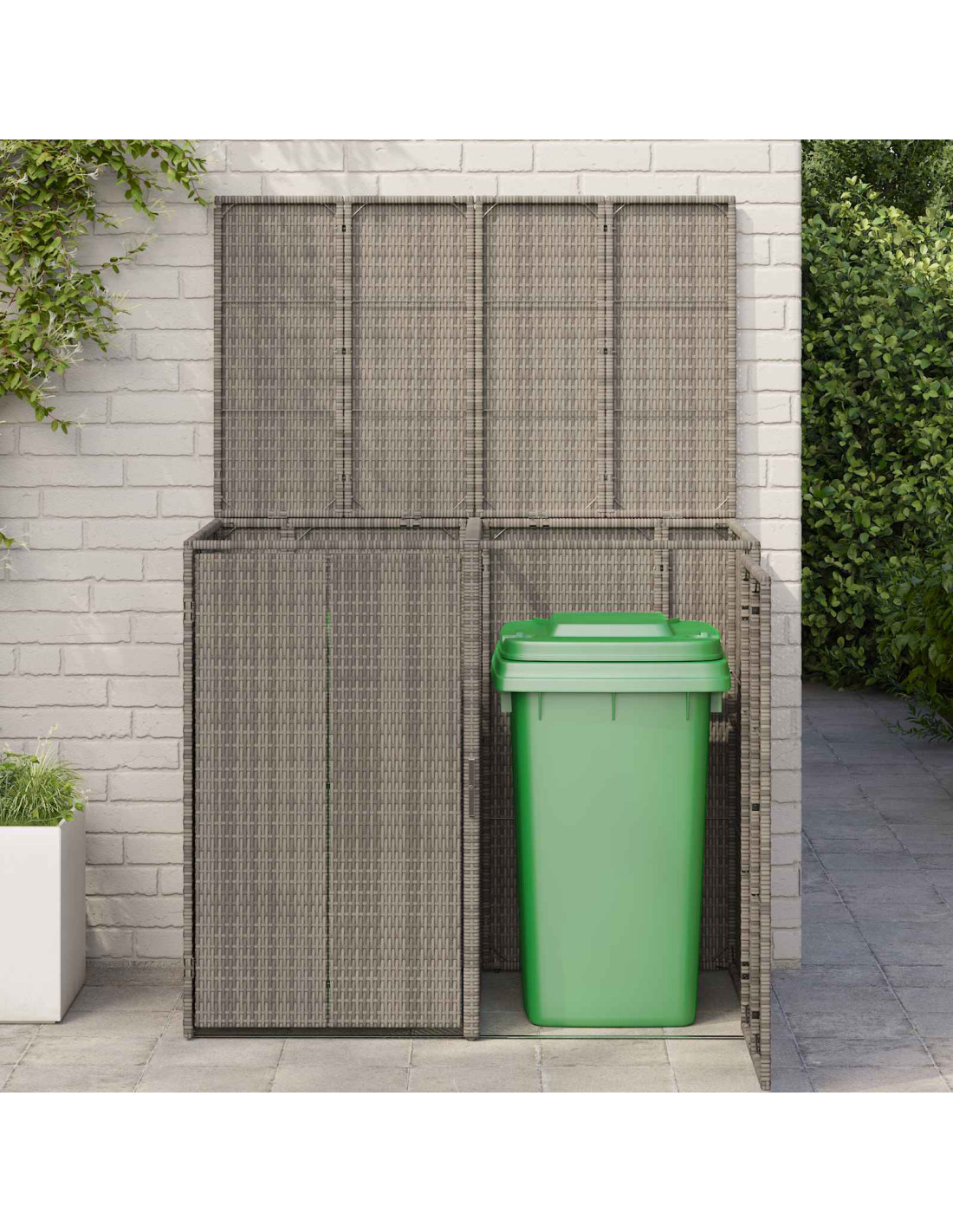 Questa Modern Box Garbage Bin Box è un'aggiunta bella e funzionale a qualsiasi ambiente esterno. Con linee pulite e un design minimalista, si adatta benissimo alla semplicità degli spazi esterni moderni, perfetta per terrazze e giardini. La forma rettangolare e il design in rattan le danno un tocco di eleganza, permettendole di fondersi con qualsiasi arredamento da giardino o patio.