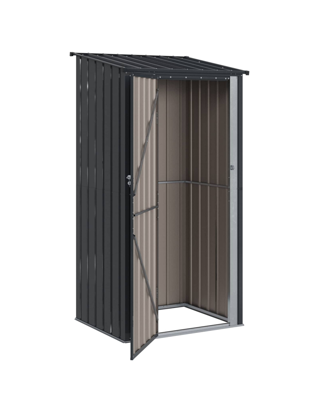 - Scarico efficiente dell'acqua Il tetto inclinato è progettato per far defluire l'acqua piovana in modo efficace. Questo evita l'accumulo d'acqua e mantiene l'ambiente di stoccaggio asciutto e sicuro per tutte le tue cose.