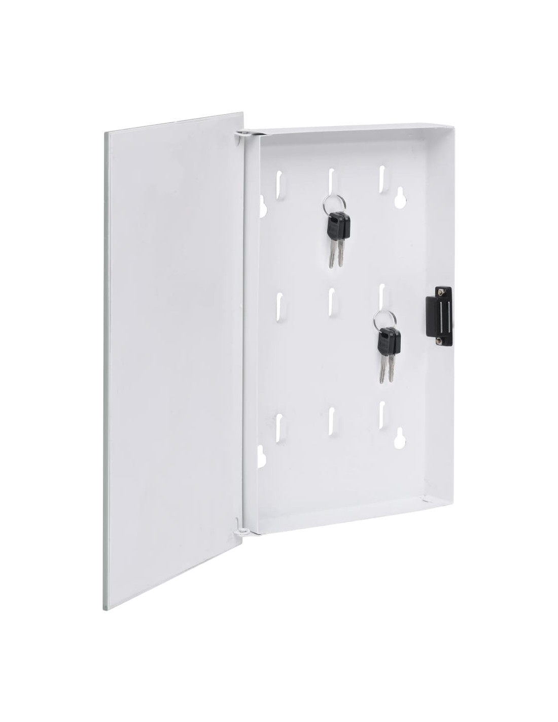 La cassetta portachiavi è realizzata in robusto acciaio verniciato a polvere con 9 ganci dentro, fornendo ampio spazio per le chiavi. L'anta frontale magnetica è realizzata in vetro temperato ed è ideale per attaccare appunti, foto e altri oggetti importanti. Gli elementi di carta vengono inoltre tenuti saldamente in posizione sulla parte anteriore del mobile utilizzando uno dei 6 magneti. Inoltre, potete persino scrivere sulla lavagna magnetica con la penna. È facile da pulire con il cancellino incluso.