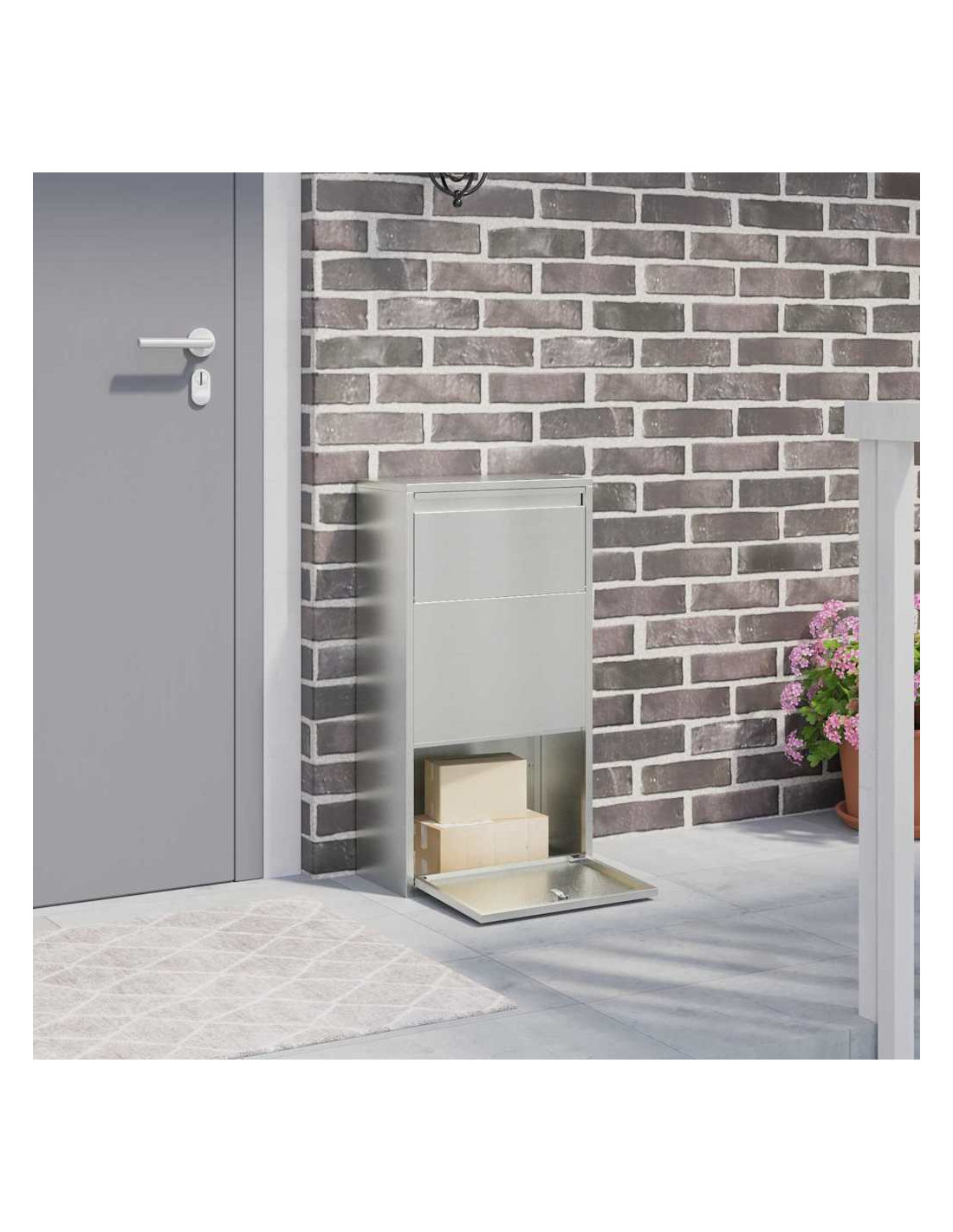 - Design conveniente: Grazie alla porta a cerniera e alle maniglie ad incastro, accedere ai pacchi è facilissimo: basta aprire. La maniglia è ergonomica e comoda. Ha ampio spazio di stoccaggio per lettere e pacchi di varie dimensioni.