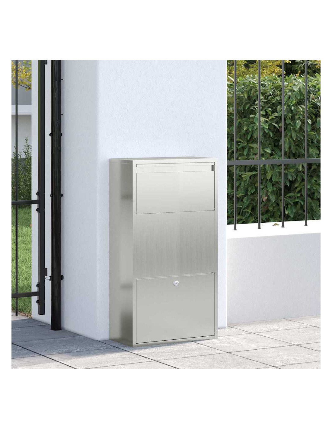 Questa è una cassetta postale moderna che unisce stile e funzionalità per custodire al sicuro le tue consegne. Perfetta per chi ama il design contemporaneo, si integra bene in giardini e terrazze senza rovinare l'estetica. La sua forma rettangolare e le maniglie argento la rendono adatta a qualsiasi spazio esterno, dando un tocco di eleganza mentre protegge il contenuto. È l'ideale per chi ha uno stile di vita impegnato e ha bisogno di una cassetta bella e affidabile per pacchi e posta, garantendo comodità e sicurezza.