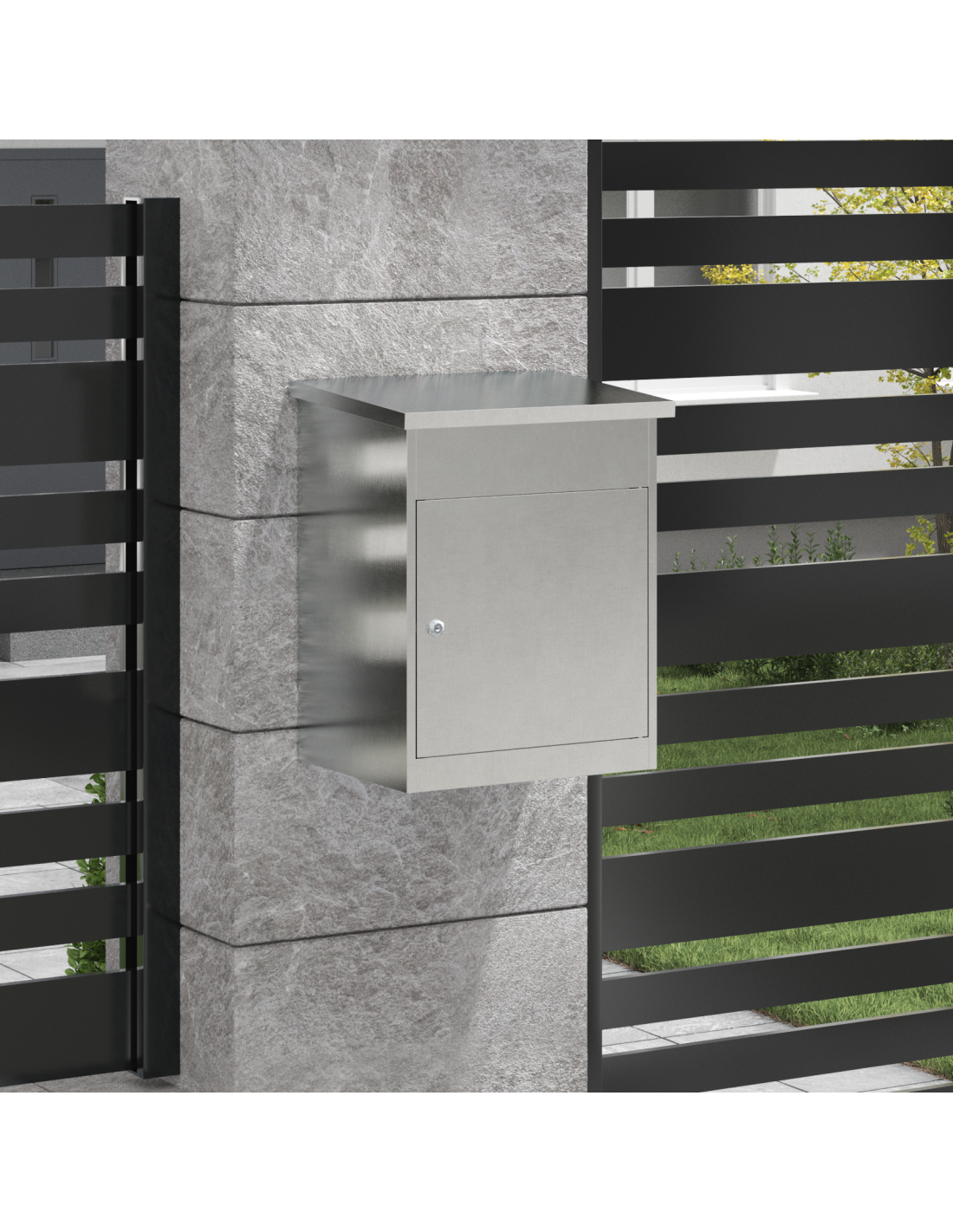 - Costruzione in acciaio durevole Questa cassetta postale è in acciaio, quindi è resistente e durevole. È progettata per affrontare l'uso esterno e resistere alle intemperie. La sua robustezza protegge il contenuto, mantenendo posta e pacchi al sicuro.