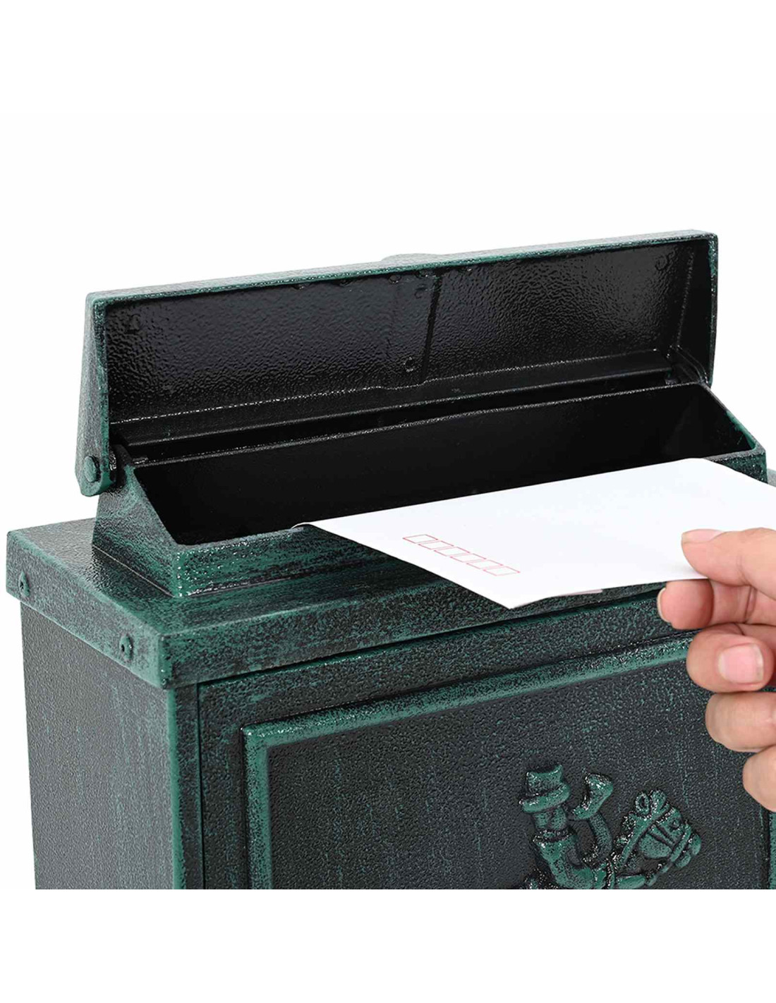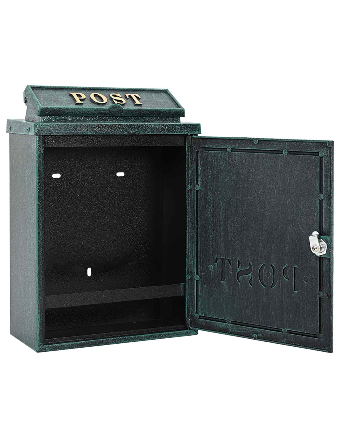 Questa cassetta postale da parete vintage aggiunge un fascino speciale intorno alla porta, mescolando un look retrò con funzionalità moderna. Realizzata in alluminio pressofuso resistente, mantiene il suo aspetto in diverse condizioni atmosferiche. Come pezzo decorativo e pratico, rende la tua casa ancora più accogliente, assicurandoti che la tua posta sia al sicuro.