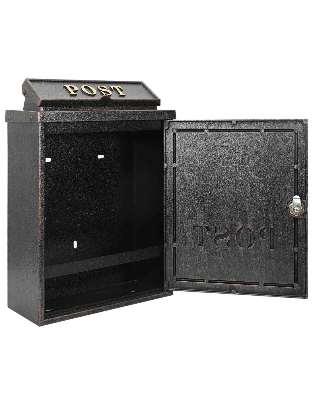 Questa cassetta postale da parete vintage aggiunge un fascino speciale intorno alla porta, mescolando un look retrò con funzionalità moderna. Realizzata in alluminio pressofuso resistente, mantiene il suo aspetto in diverse condizioni atmosferiche. Come pezzo decorativo e pratico, rende la tua casa ancora più accogliente, assicurandoti che la tua posta sia al sicuro.