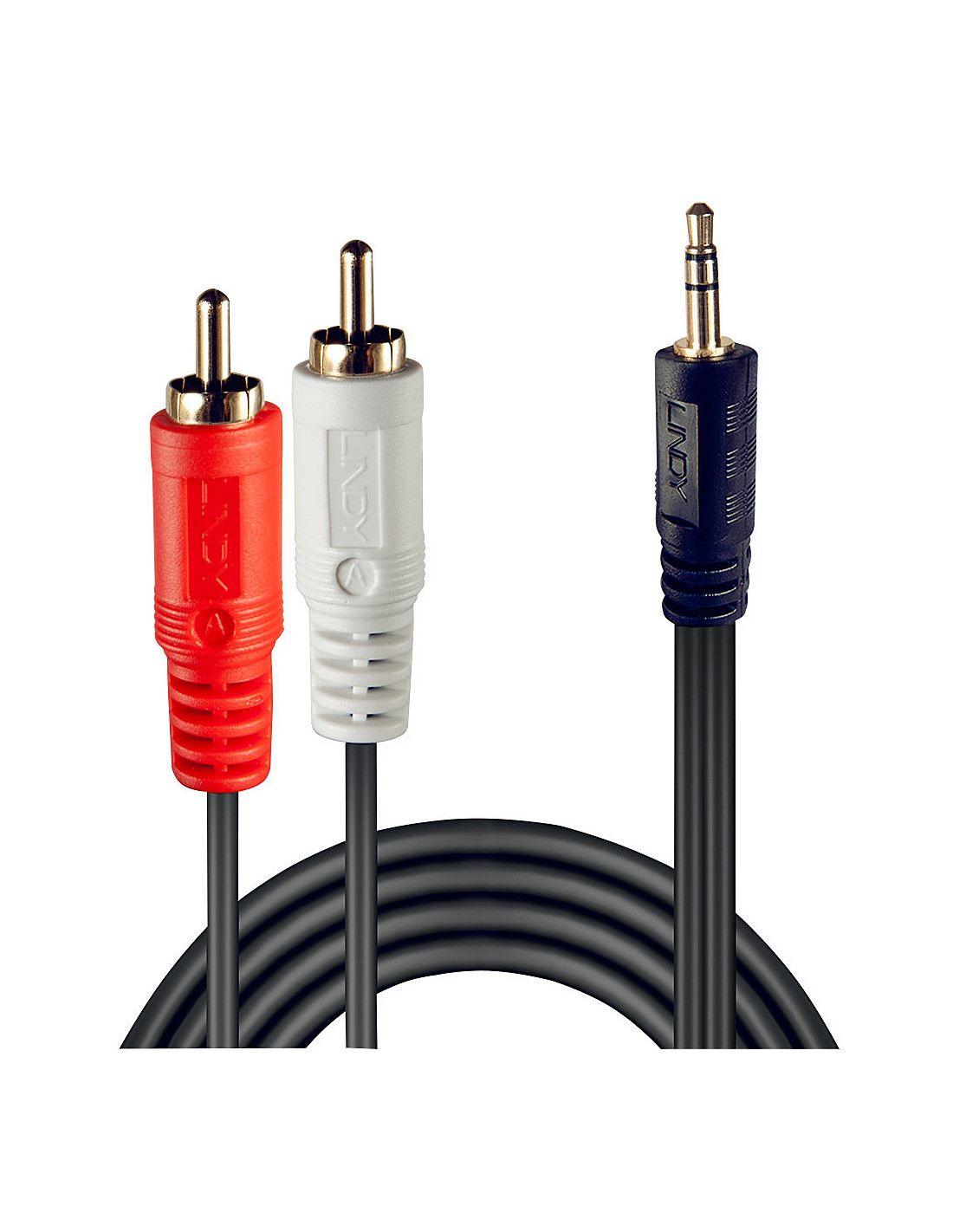 Lindy 35682. Connettore 1: 2 x RCA, Genere del connettore 1: Maschio, Connettore 2: 3.5mm, Genere del connettore 2: Maschio, Placcatura contatti: Oro, Dimensione del cavo AWG: 28, Lunghezza cavo: 3 m, Colore del prodotto: Nero