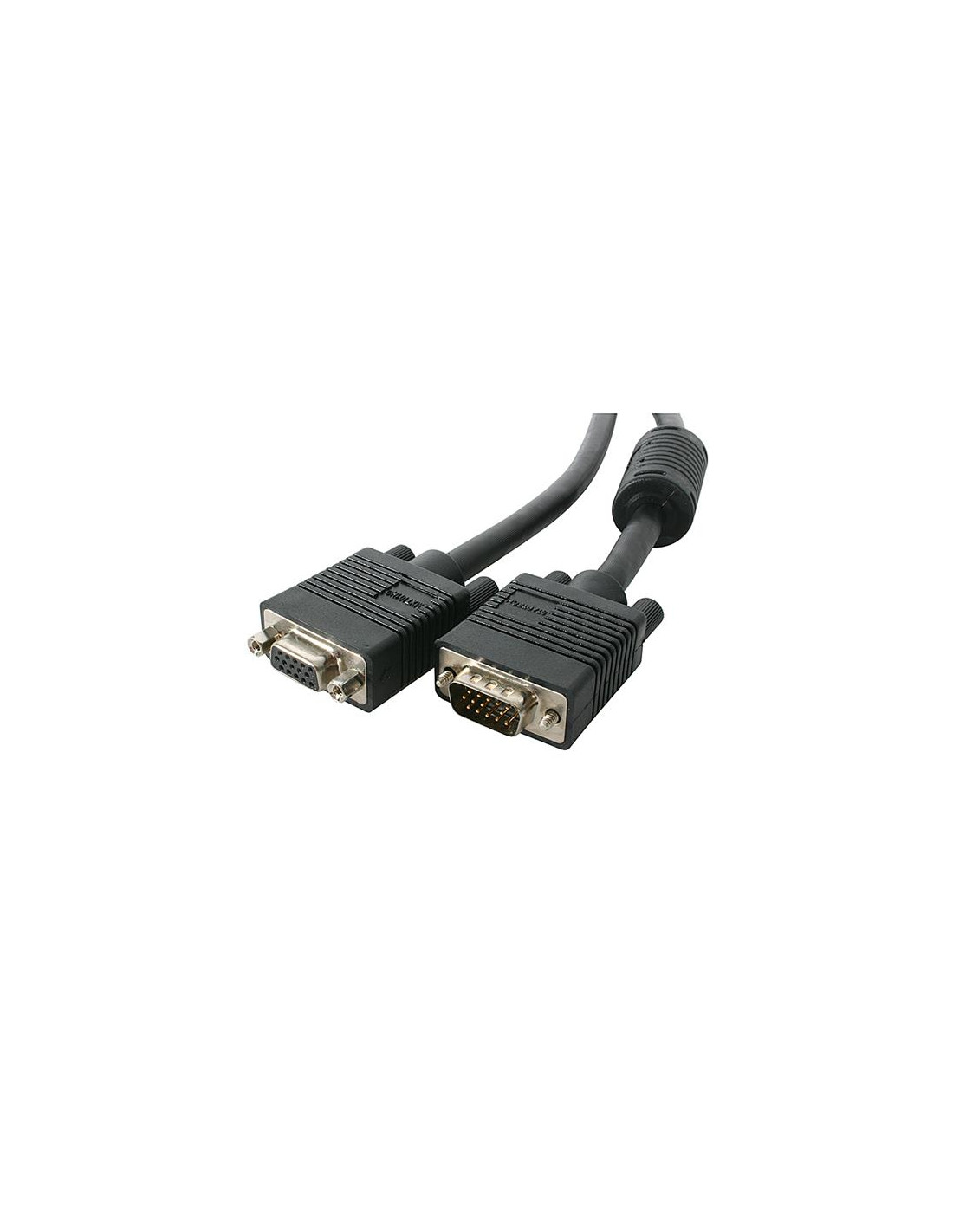 Adatto ad applicazioni VGA ad alta risoluzione, questo cavo di prolunga VGA coassiale maschio-femmina di alta qualità consente di eliminare l'effetto "ghosting" e le immagini sfocate tipiche dei cavi non coassiali, e fornisce protezione superiore dalle interferenze EMI tramite l'uso di nuclei di ferrite vicino ai terminali dei connettori.
