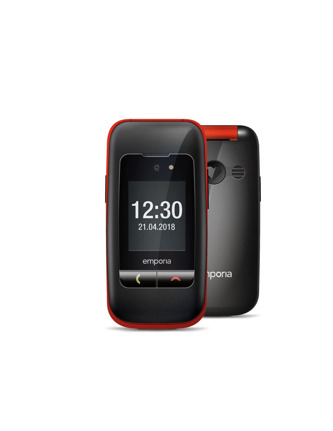 Emporia ONE. Fattore di forma: Clamshell. Dimensioni diagonale schermo: 6,1 cm (2.4"), Risoluzione del display: 240 x 320 Pixel, Display esterno. Risoluzione fotocamera posteriore (numerico): 2 MP. Bluetooth. Tecnologia batteria: Ioni di Litio, Capacità della batteria: 900 mAh, Autonomia in standby (2G): 200 h. Peso: 103 g. Colore del prodotto: Nero, Rosso