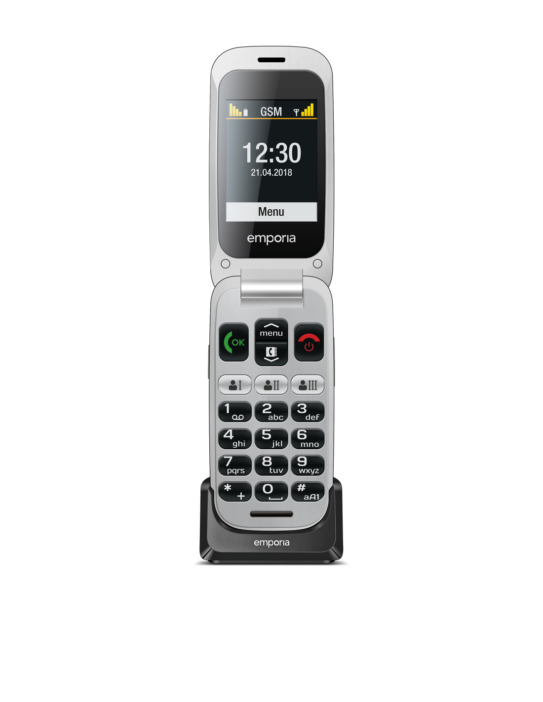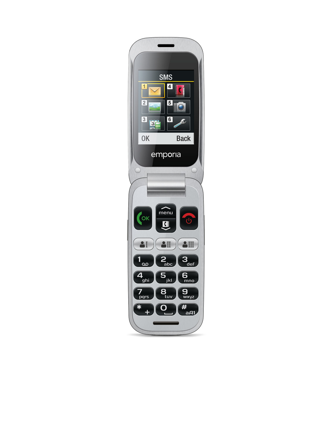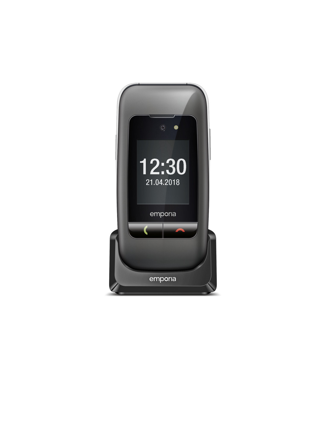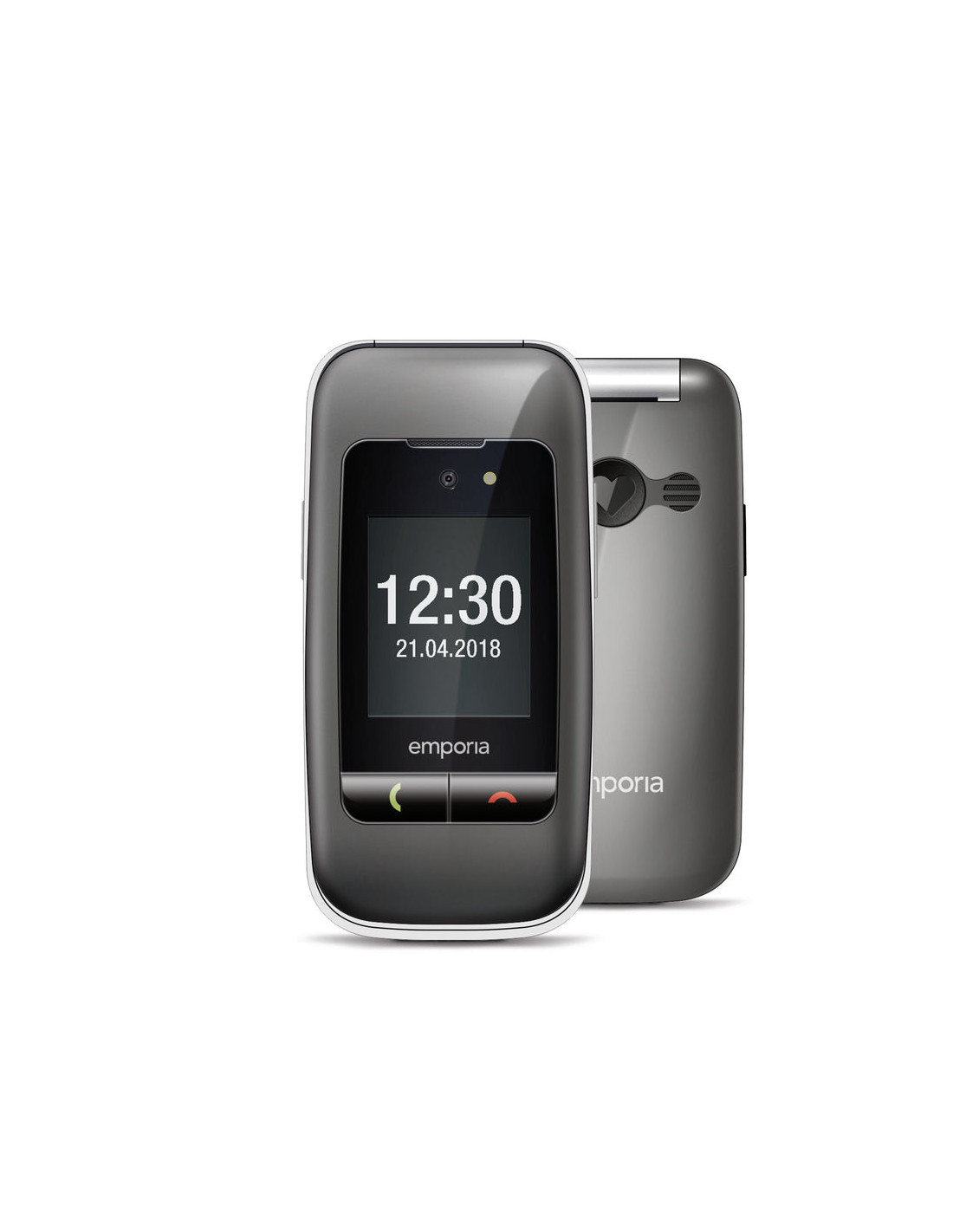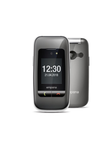Emporia ONE. Fattore di forma: Clamshell. Dimensioni diagonale schermo: 6,1 cm (2.4"), Risoluzione del display: 240 x 320 Pixel, Display esterno. Risoluzione fotocamera posteriore (numerico): 2 MP. Bluetooth. Tecnologia batteria: Ioni di Litio, Capacità della batteria: 900 mAh, Autonomia in standby (2G): 200 h. Peso: 103 g. Colore del prodotto: Nero, Grigio
