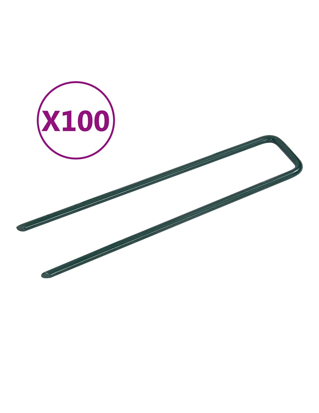 Realizzati in ferro, gli elementi di fissaggio sono resistenti alla corrosione e agli agenti atmosferici. Il design a punta inclinata rende la penetrazione nel terreno più facile e senza sforzo. I perni a forma di U permettono di fissare il tappeto erboso artificiale al fine di evitare che venga spazzato via dal vento.